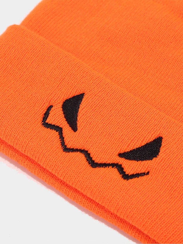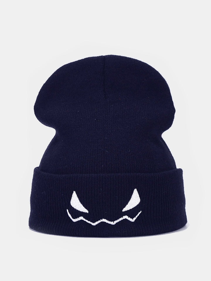 Bonnet Tricoté Émbroidé avec Visage de Fantôme Terrifiant