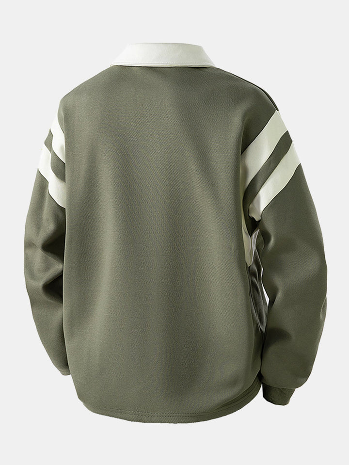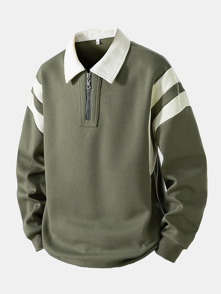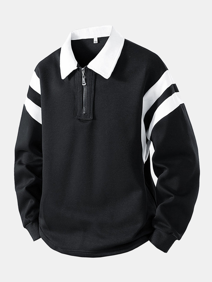 Design Sportif et Élégant : Conçu avec un col zippé et un motif rayé intemporel, ce sweat-shirt allie confort et style sans effort.