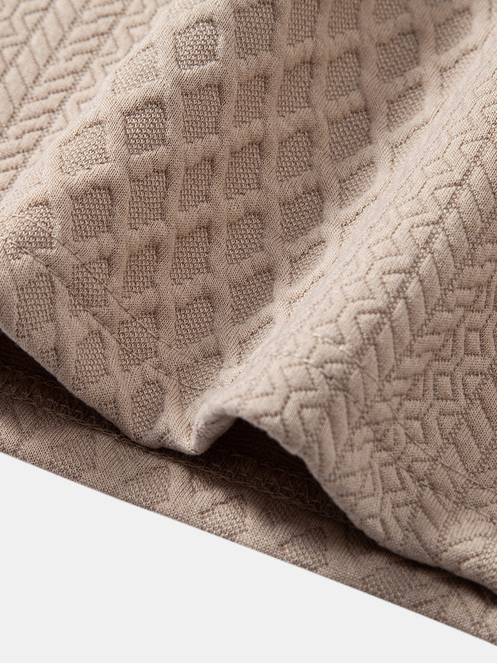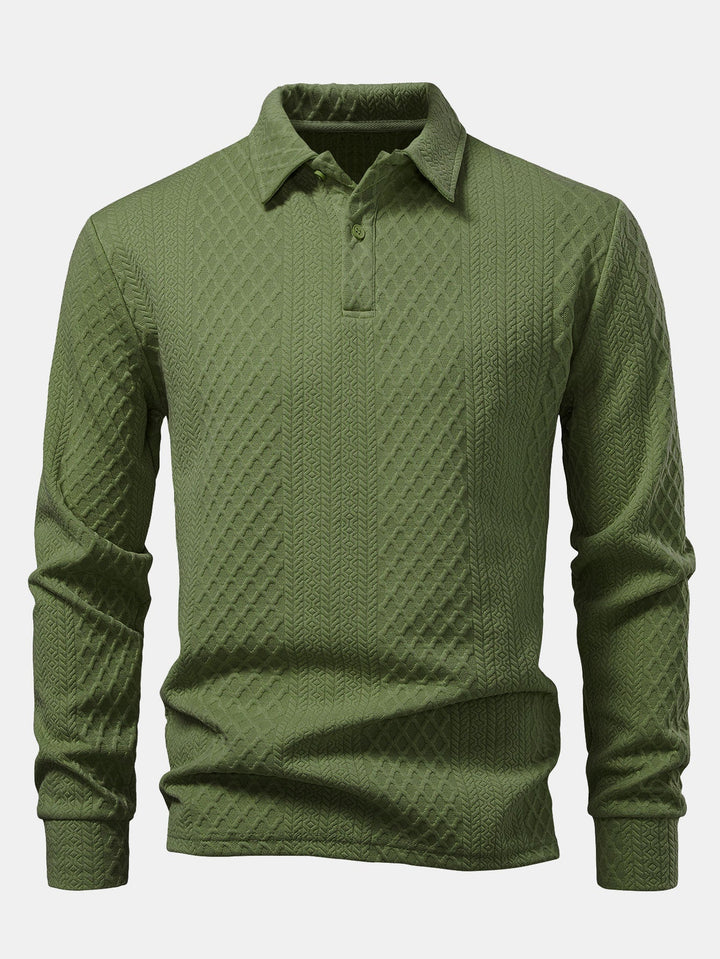 Élevez votre style smart-casual avec ce polo à manches longues, orné d'un motif jacquard géométrique raffiné. Confectionné en tissu doux et respirant, il allie confort et élégance.