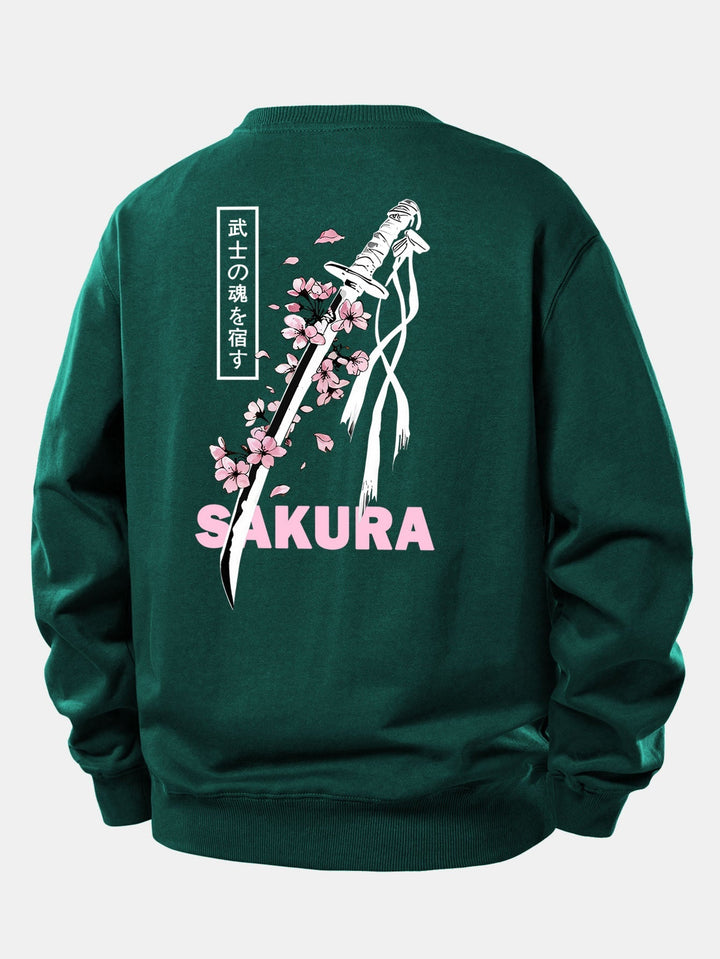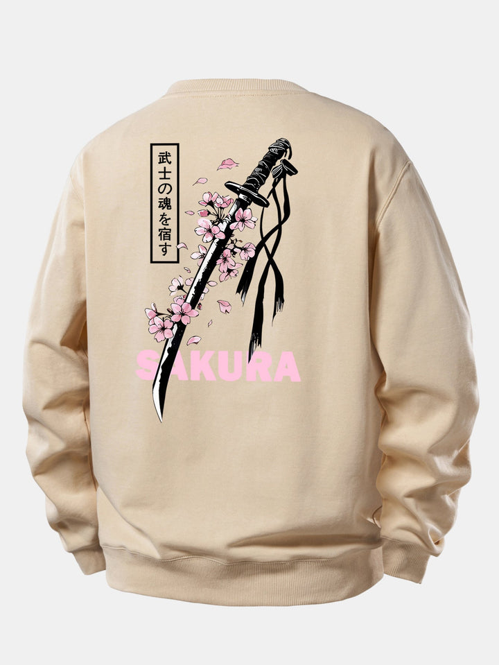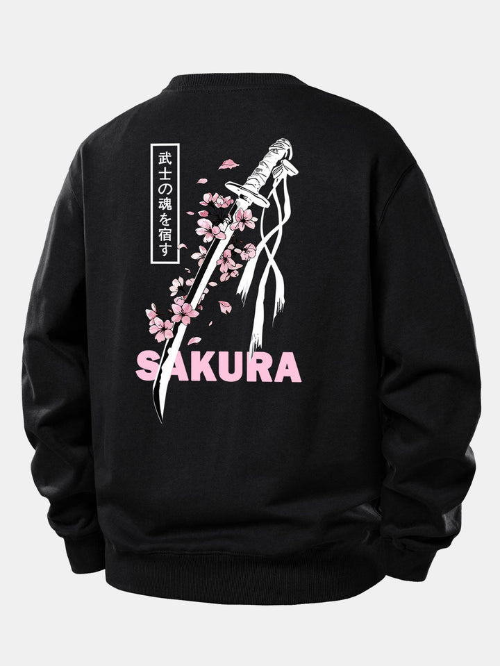 Design unique : Ce sweatshirt présente un design frappant d'une katana entourée de délicates fleurs de sakura, fusionnant l'art japonais avec le confort quotidien.