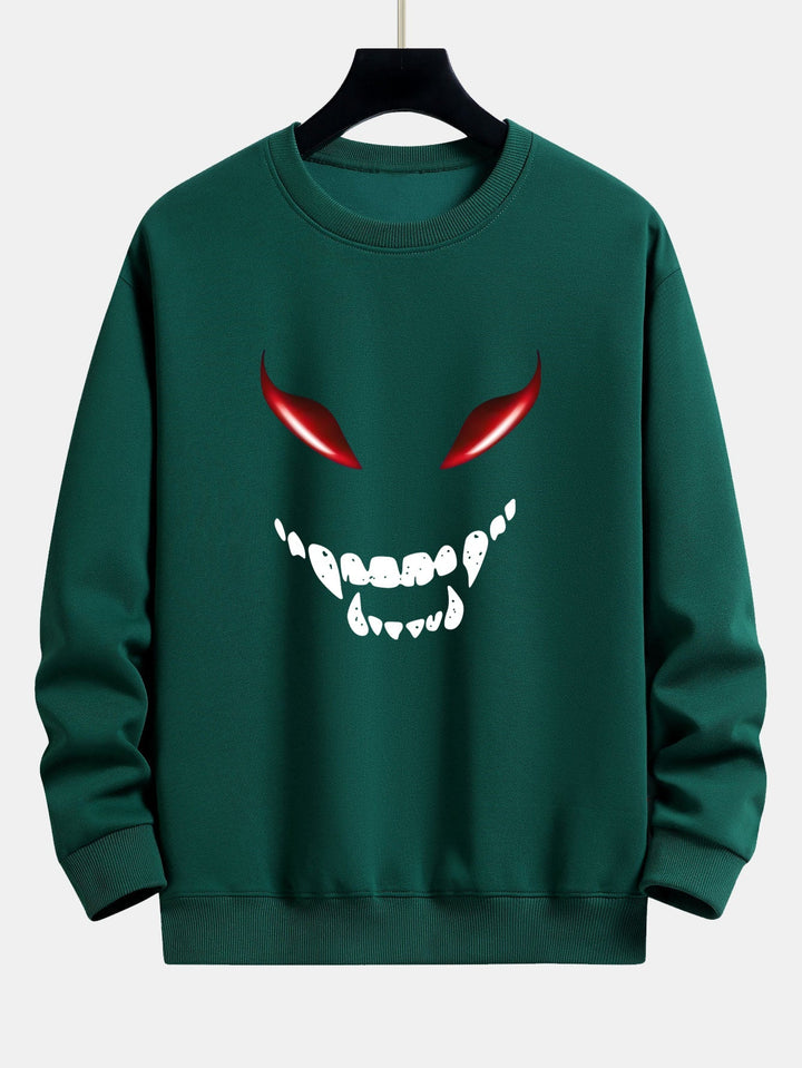 Pull Décontracté avec Imprimé de Visage Effrayant