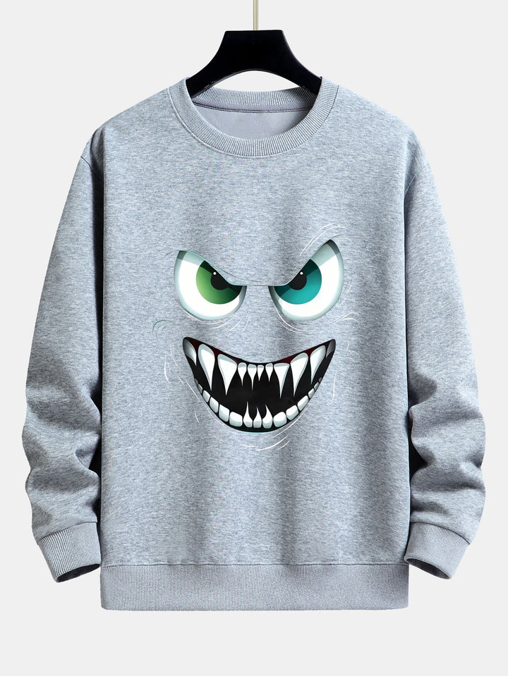 Design : Adoptez un style unique avec ce sweatshirt orné d'un graphique de visage souriant audacieux et espiègle. Parfait pour le streetwear, il combine style et confort douillet.
