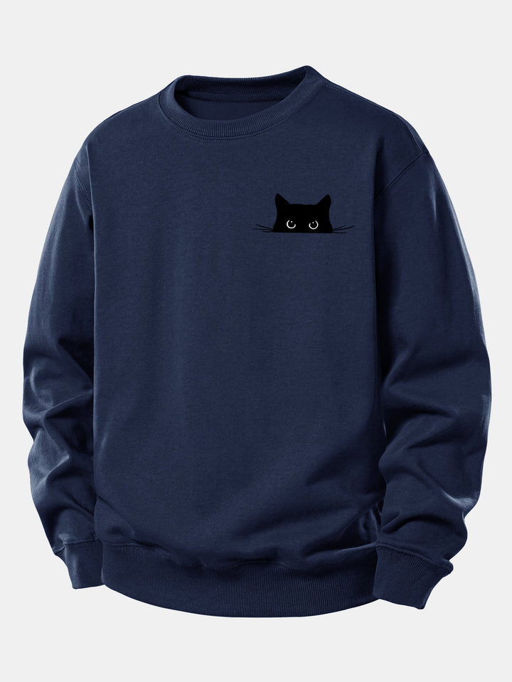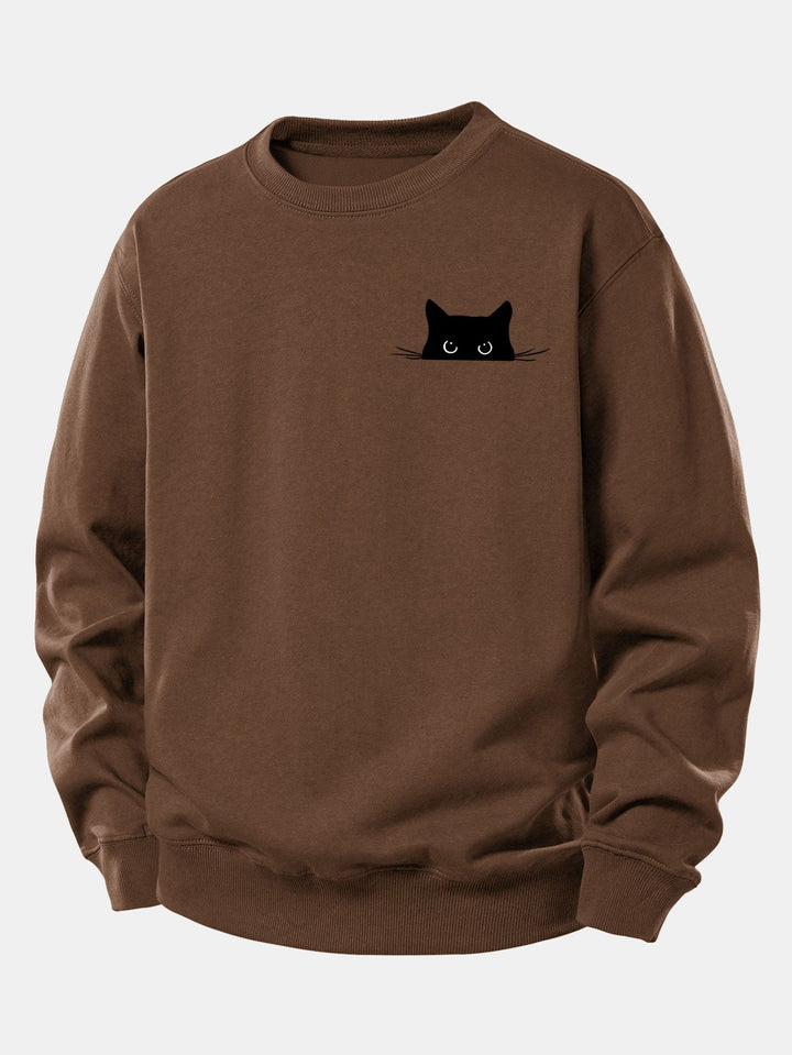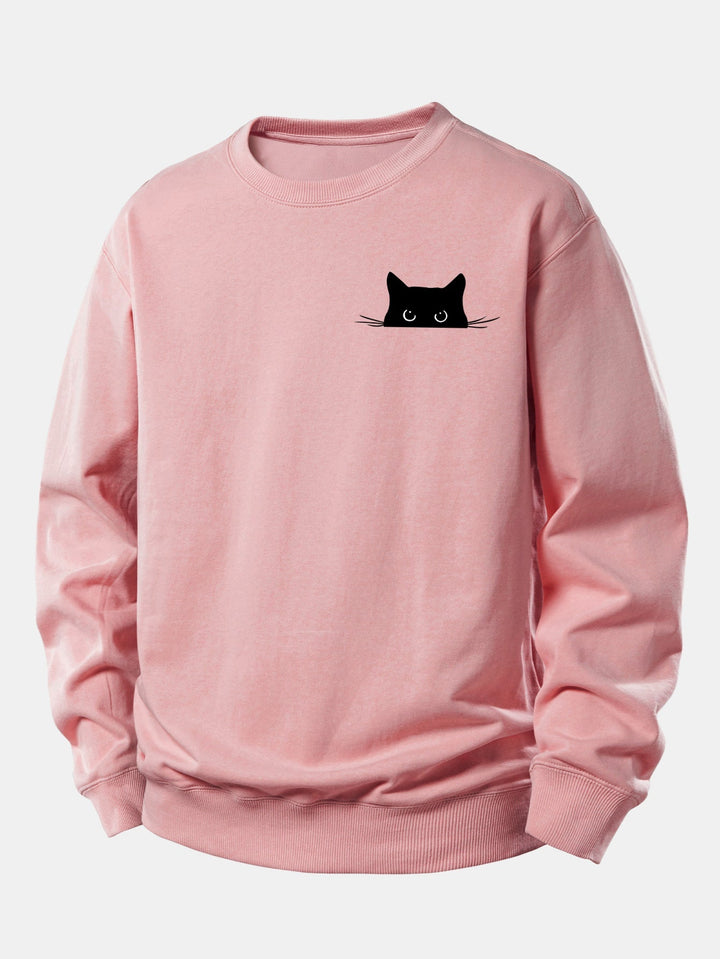 Relaxed Fit Black Cat Graphic Sweatshirt