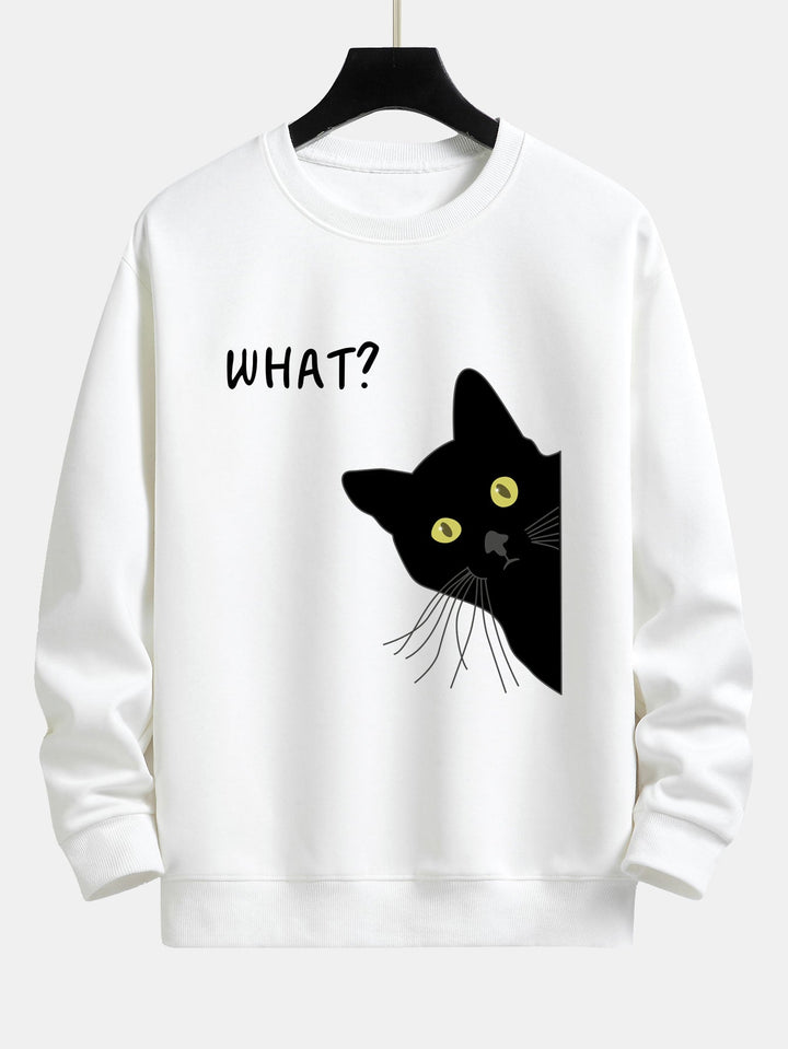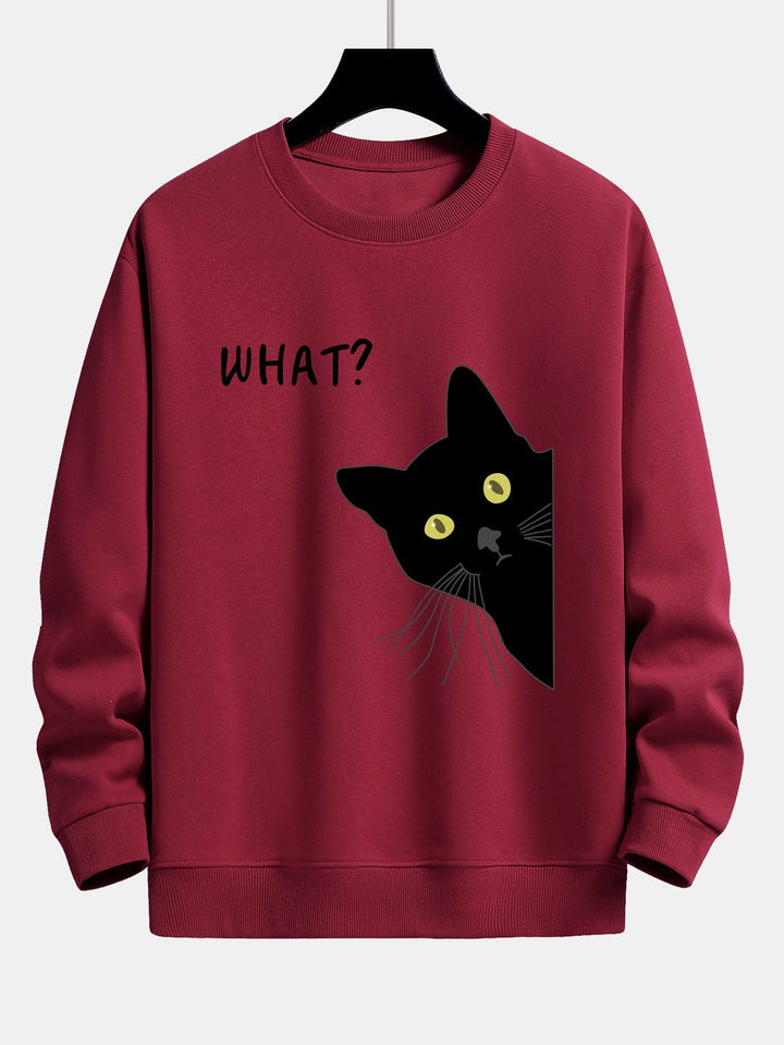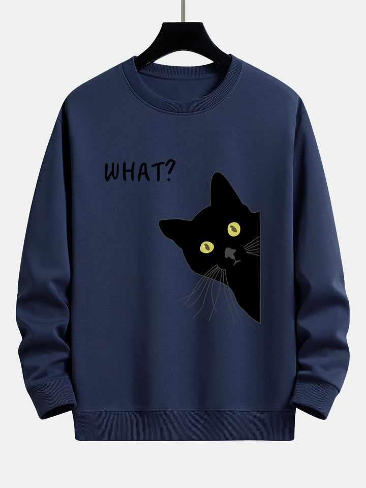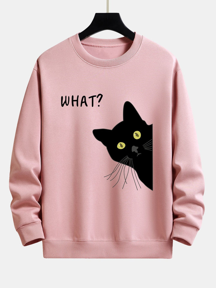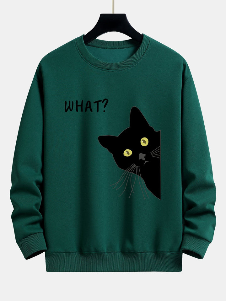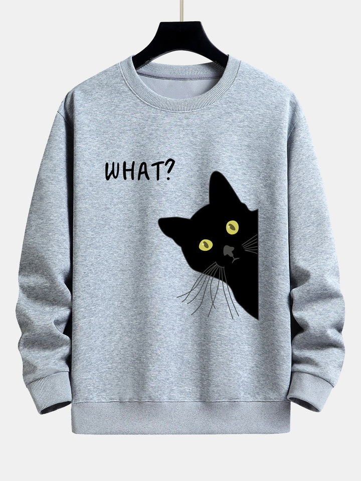 Design : Sweatshirt Relax Fit Imprimé avec un adorable graphique de chat noir.