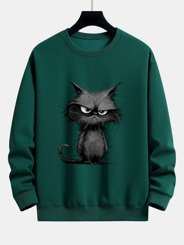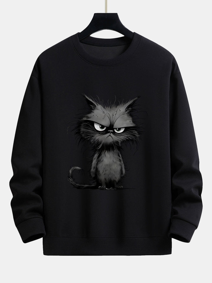 Relaxed Fit Black Cat Graphic Sweatshirt