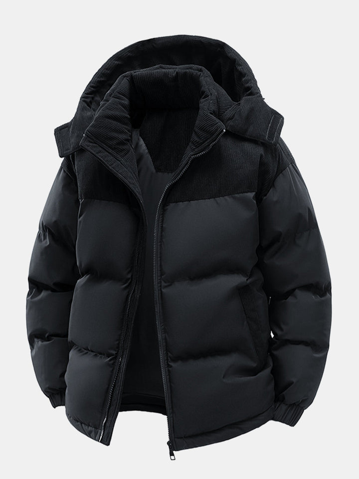 "Veste Puffer à Capuche en Velours Côtelé" can be rewritten as "Veste Puffer à Capuche en Velours Côtelé Chic".