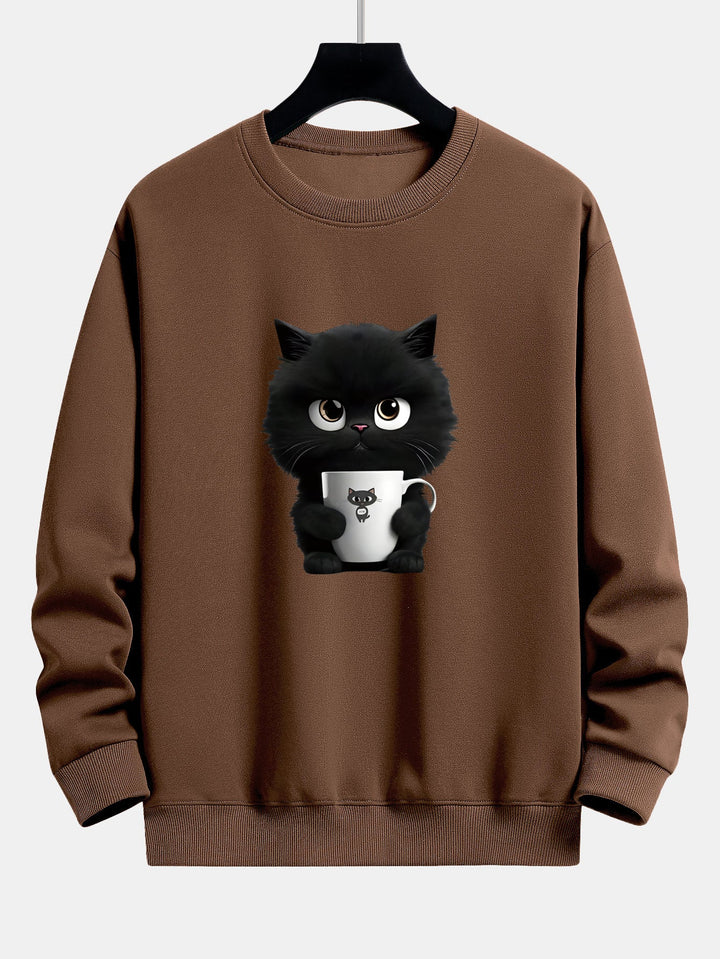 Print Relax Fit Sweatshirt. Featuring an adorable black cat graphic on soft, cozy fabric, this sweatshirt blends comfort with whimsical style. Its relaxed fit makes it perfect for layering or wearing on its own, ideal for casual outings, lounging, or everyday wear.