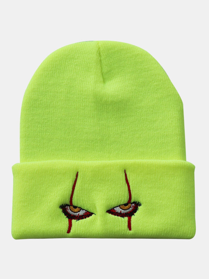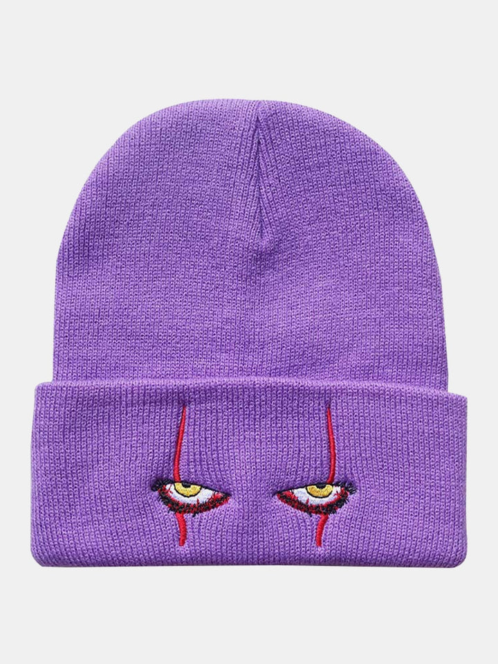 Design Effrayant : Avec un motif d'œil de clown terrifiant, ce chapeau tricoté est idéal pour les fêtes costumées, le trick-or-treating, ou pour ajouter une touche unique à votre look d'Halloween.