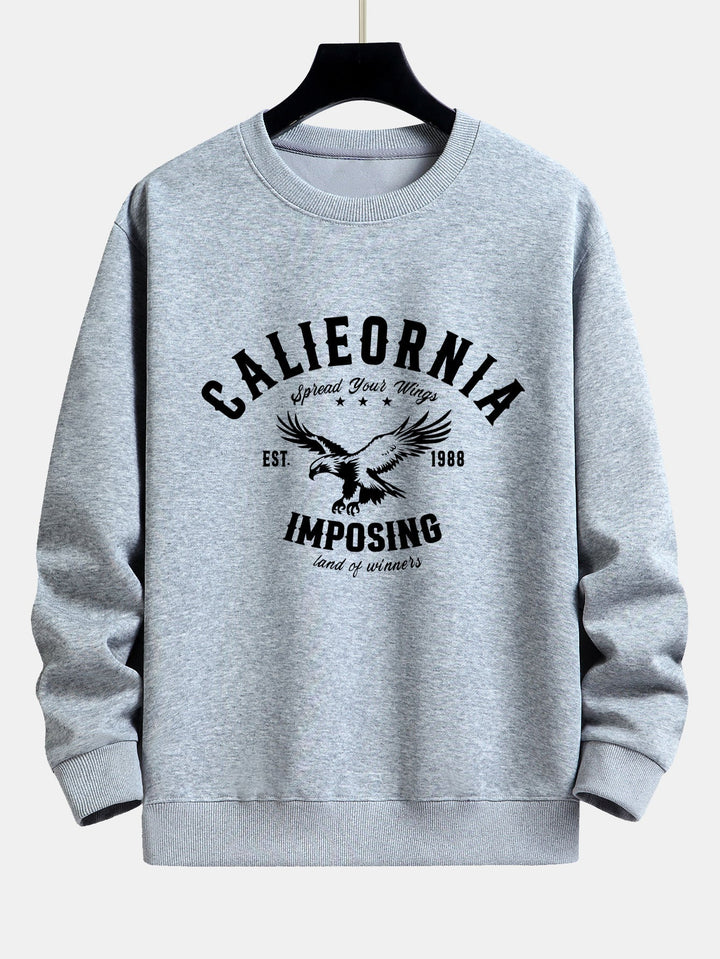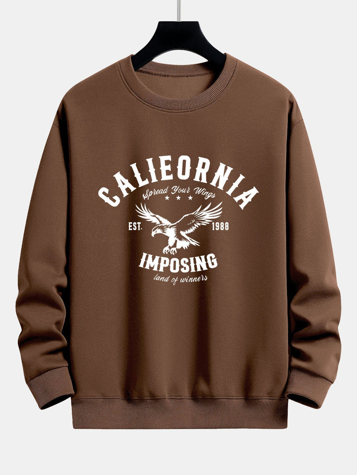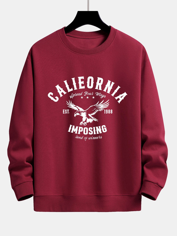 Design audacieux : Ce sweatshirt présente un graphique accrocheur d'aigle et le mot ''Californie'', alliant confort décontracté et style américain.