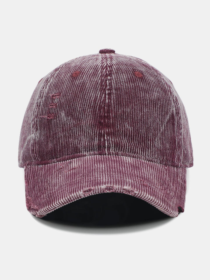 Casquette de baseball en velours côtelé délavé, unie et tendance