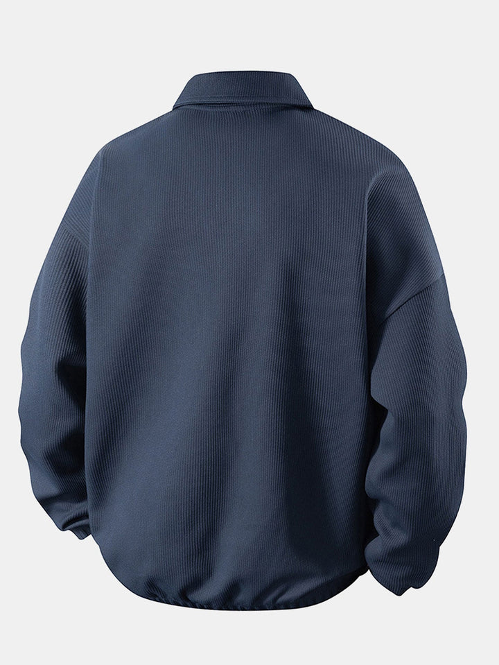 Waffle Relax Fit V-Neck Polo Sweatshirt