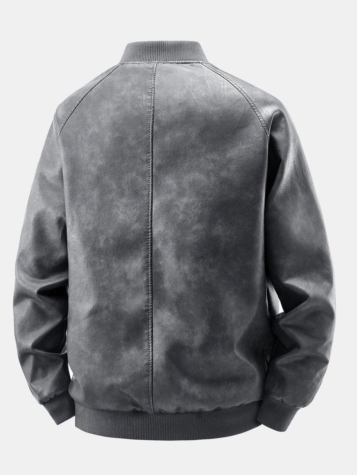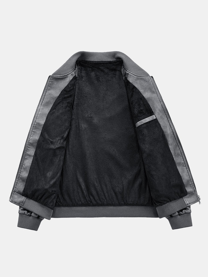 Fleece Lined Washed Distressed Leather Bomber Jacket