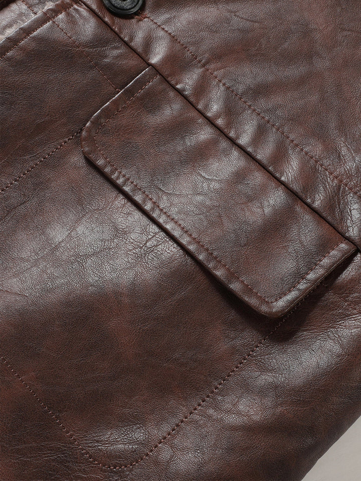 Restez élégant et au chaud avec notre manteau en cuir PU mi-long, doublé en polaire douce. Confectionné en cuir synthétique lisse, ce manteau allie style urbain moderne et confort pratique pour l'hiver.