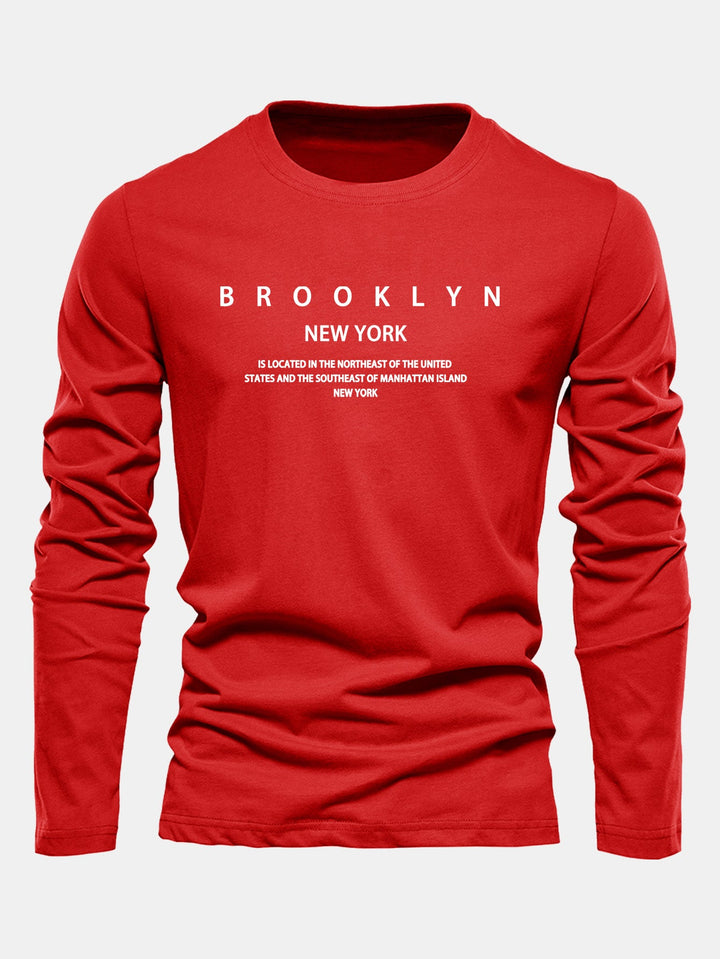 Long Sleeve NY Brooklyn Print Cotton T-Shirt