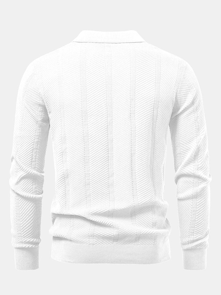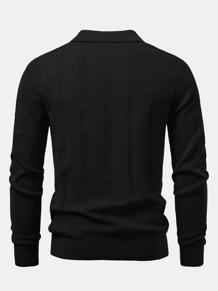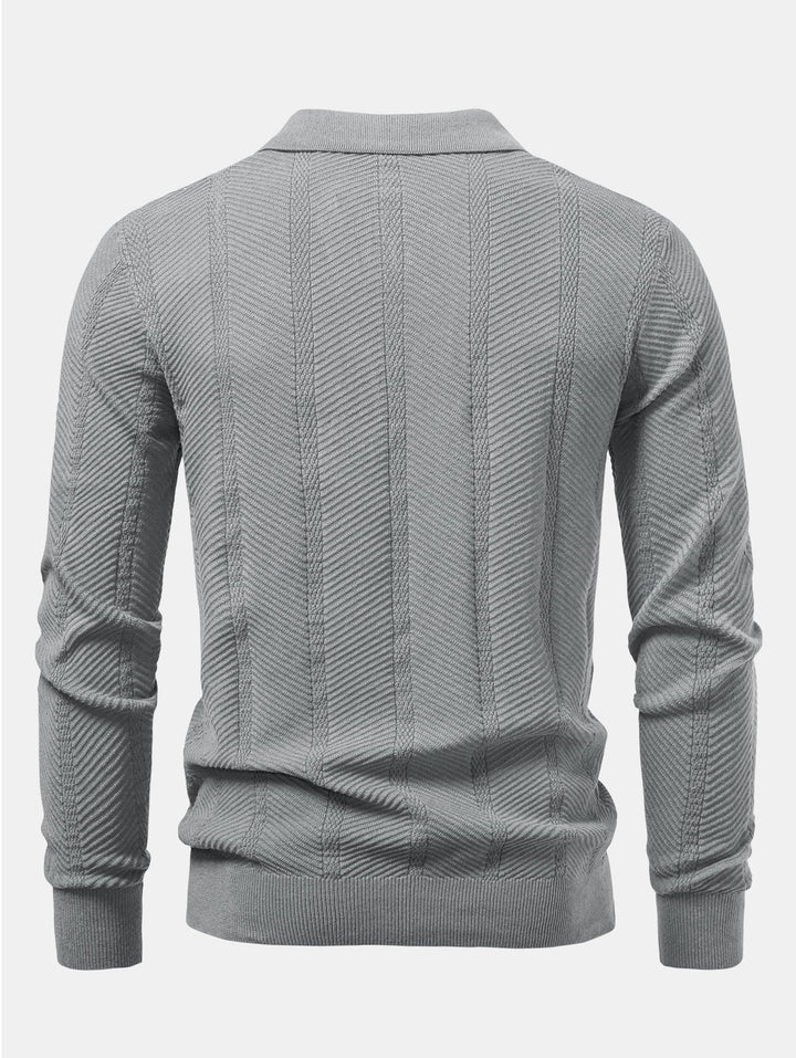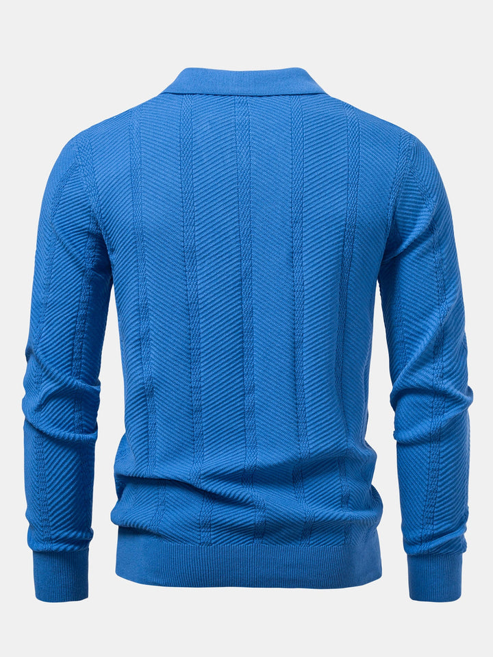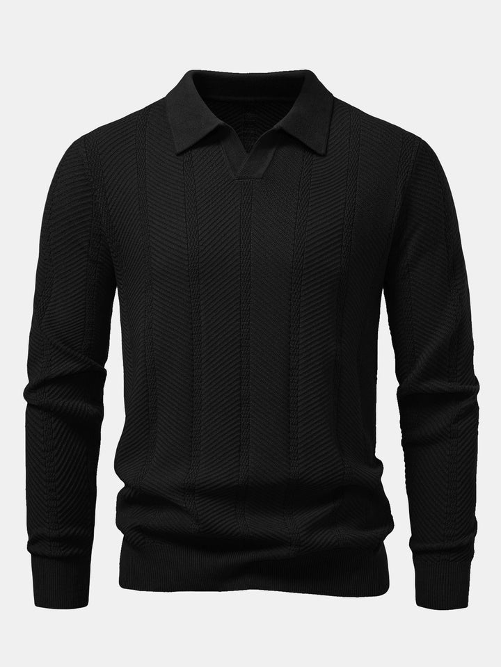 Long Sleeve Stripe V Neck Knit Polo Shirt