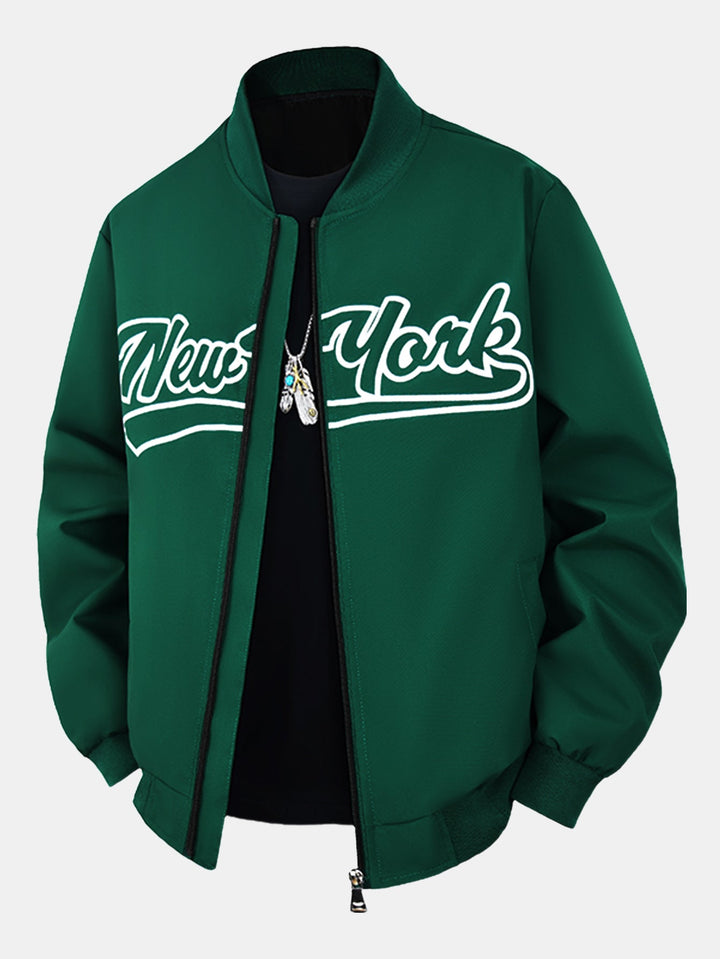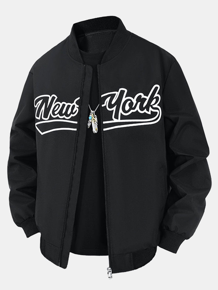 Designed with a classic varsity-style baseball collar and bold ''New York'' print, this jacket combines sporty vibes with modern streetwear appeal. Lightweight yet durable, it's perfect for layering over T-shirts, hoodies, or sweatshirts, making it a versatile choice for casual outings, school, or everyday wear.