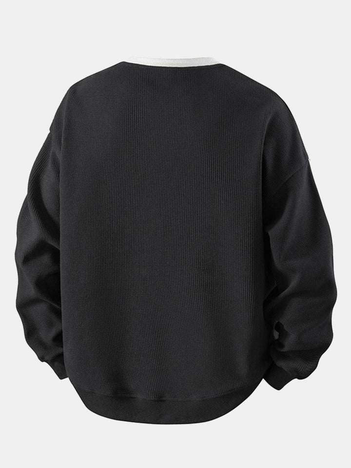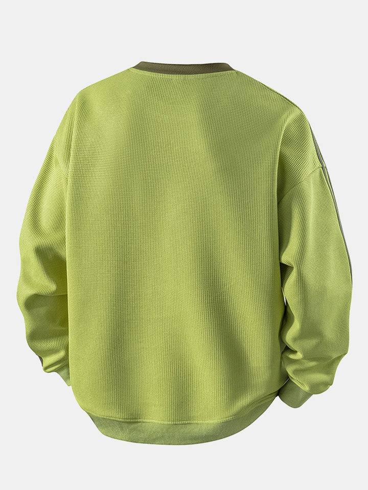 Élevez votre style décontracté avec notre sweatshirt à col rond en waffle. Conçu avec une texture en waffle douce, il allie confort et une ambiance moderne pour un look parfait au quotidien.