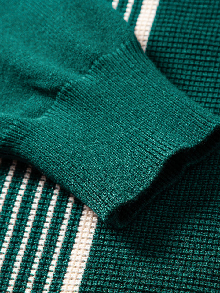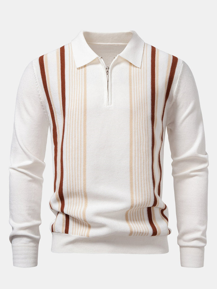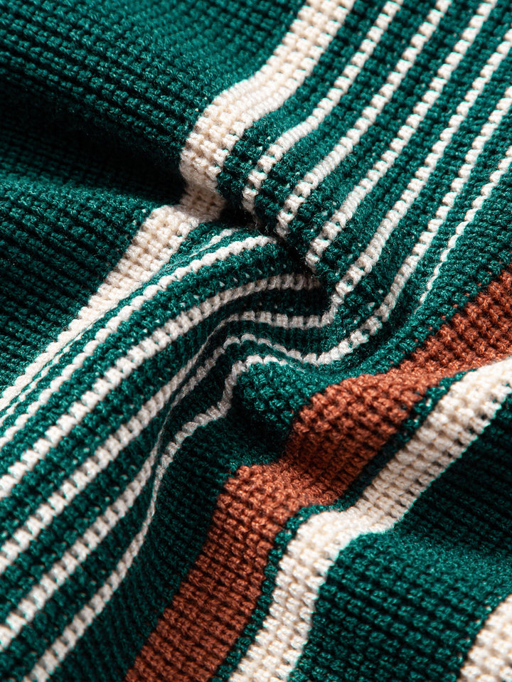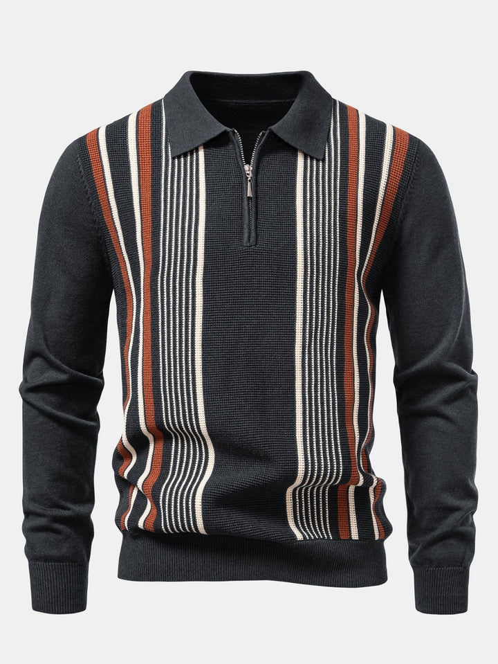 Featuring a classic striped design and a convenient quarter-zip neckline, this sweater combines style and functionality. Crafted from soft, comfortable knit fabric, it's perfect for layering over shirts or wearing alone. The relaxed fit ensures all-day comfort, making it ideal for streetwear looks, casual outings, or cozy indoor wear.
