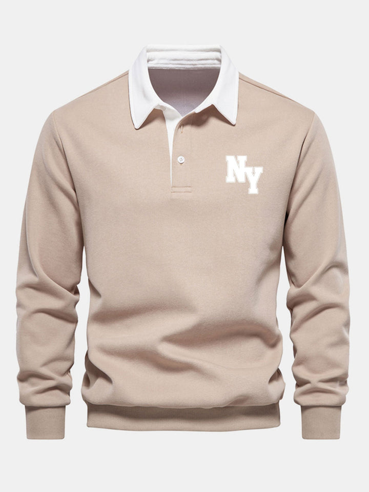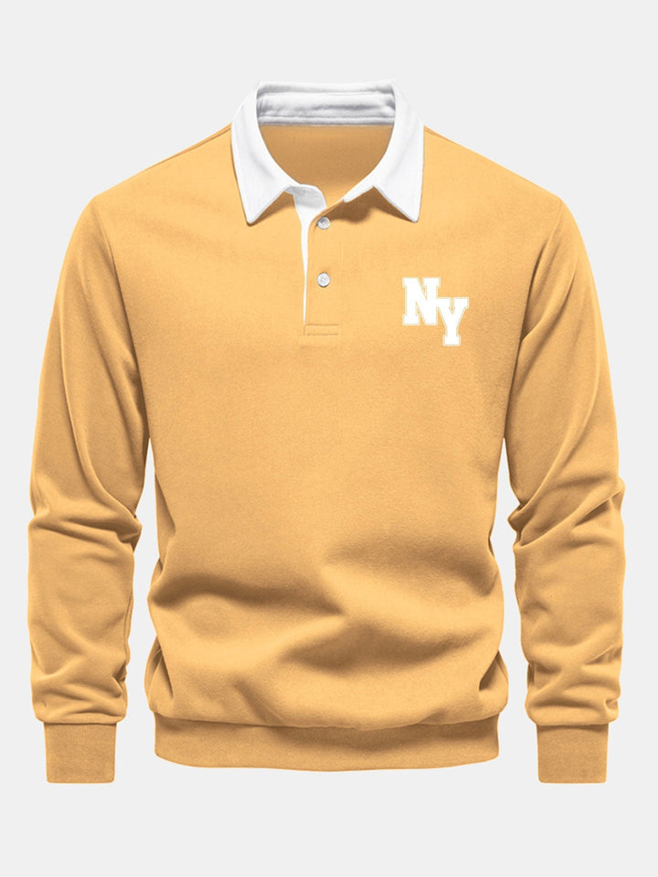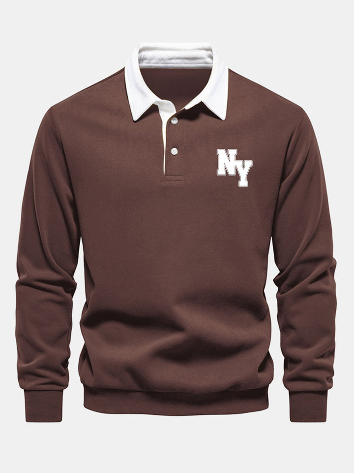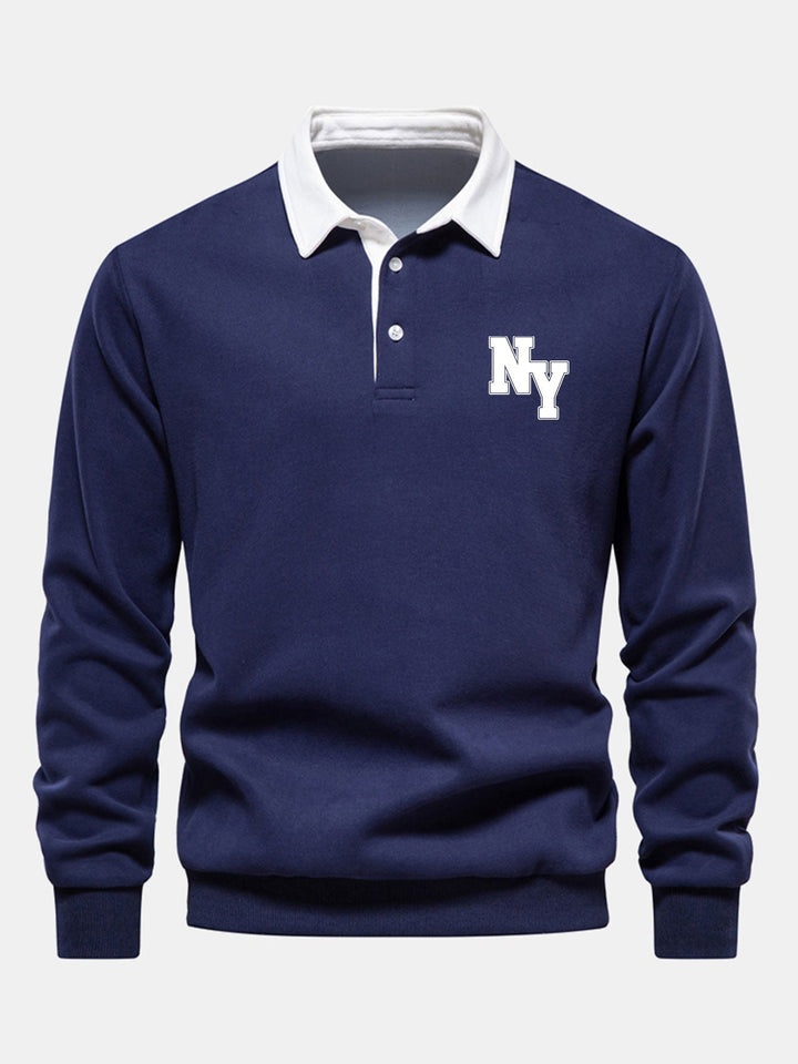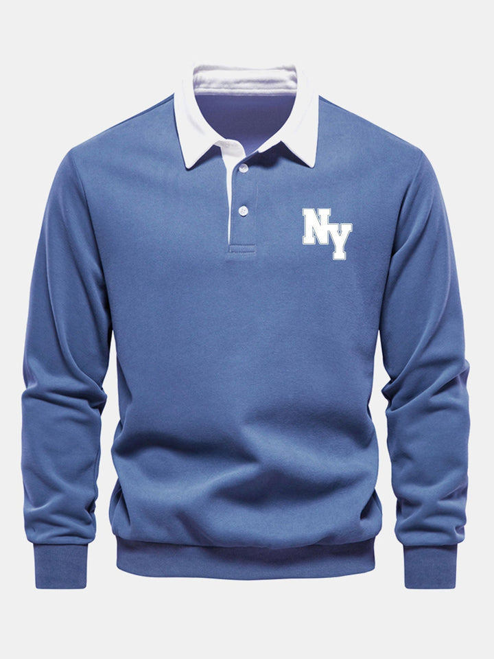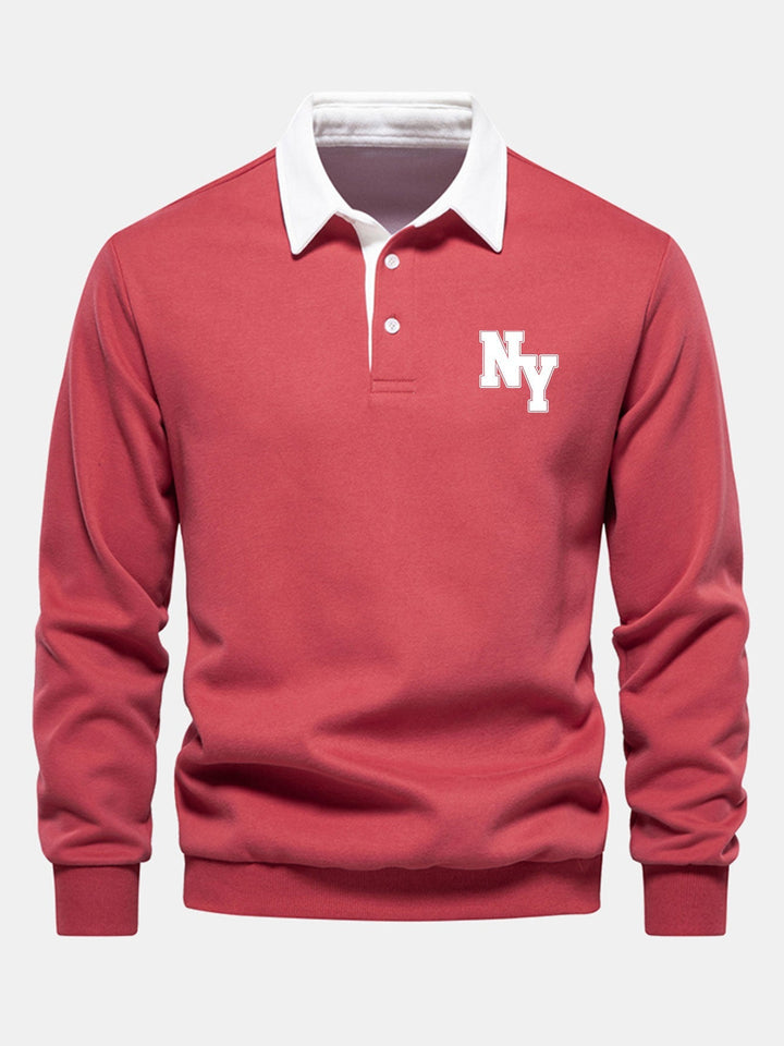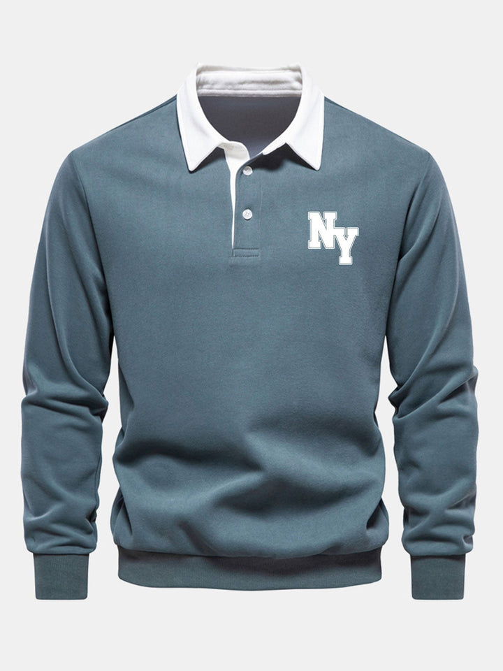 New York Sweatshirt avec Col Polo Contrasté