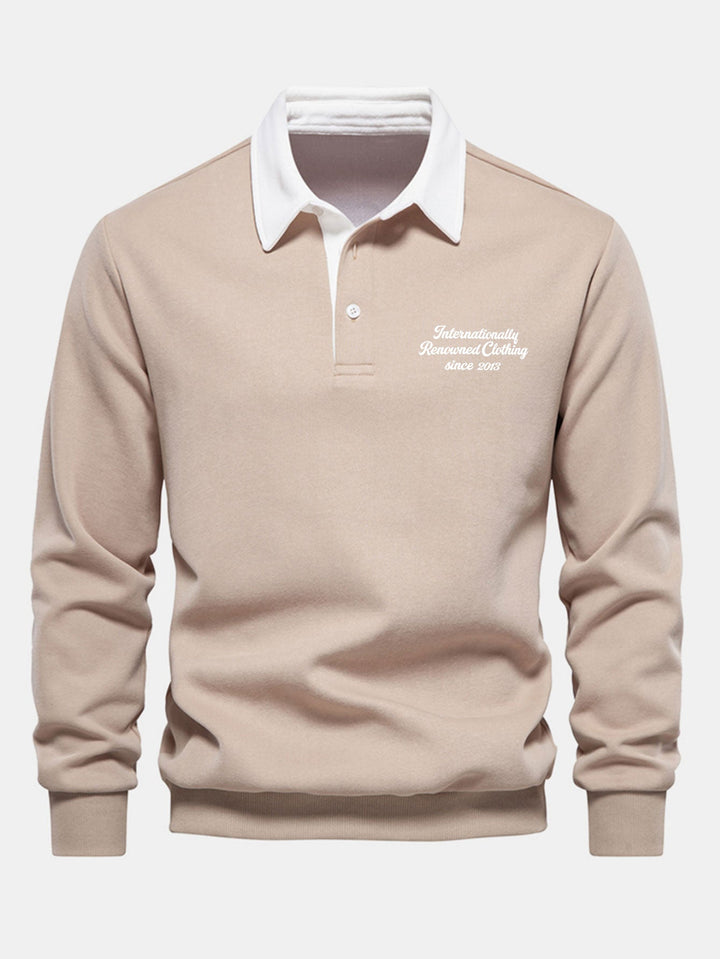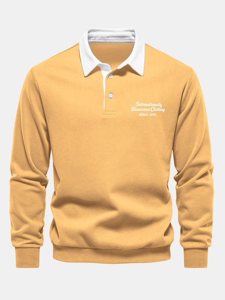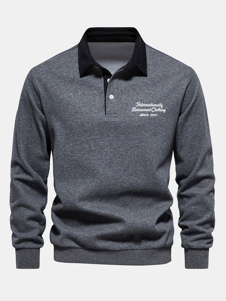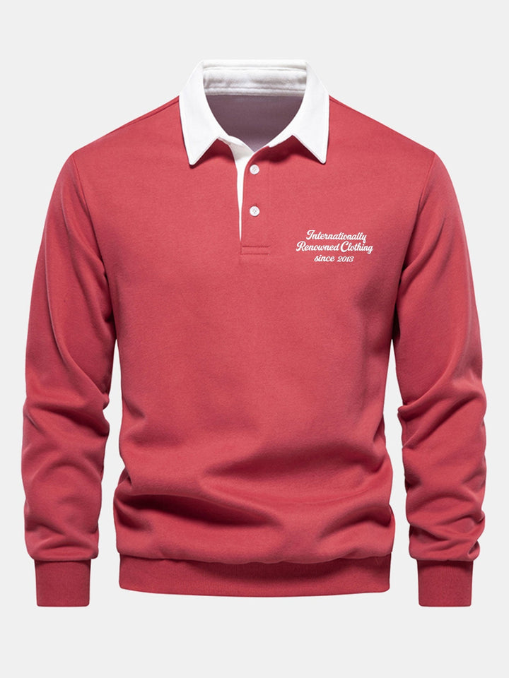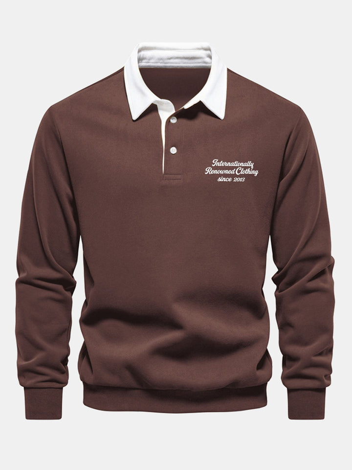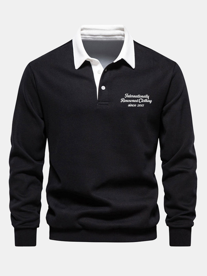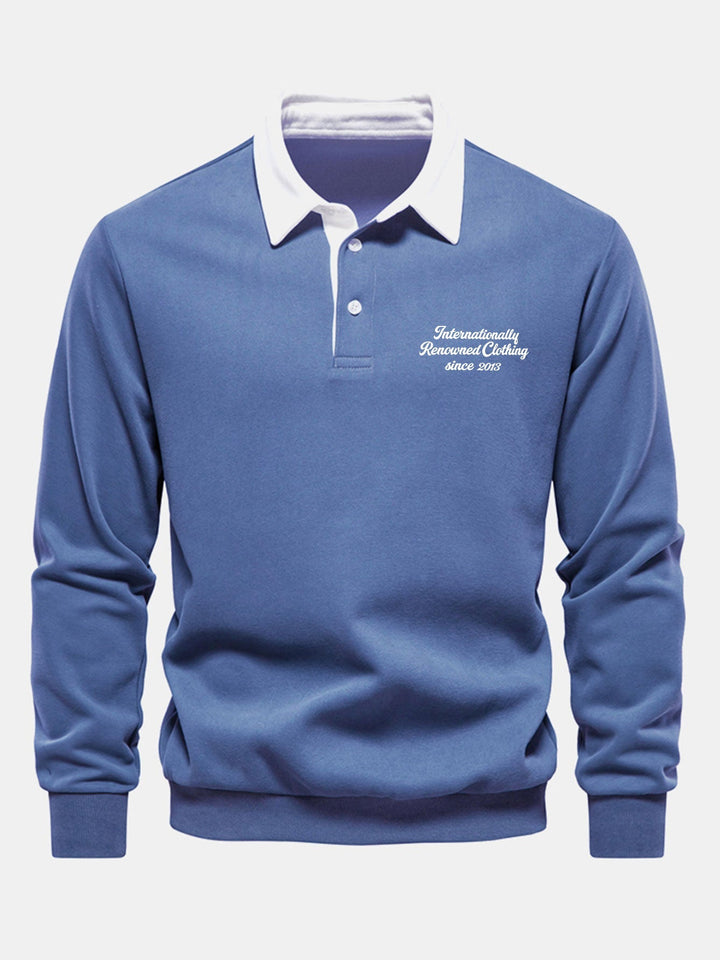 Polo-Collared Sweatshirt with Contrasting Slogan Print