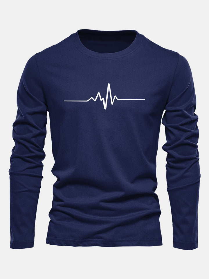 Design : Fabriqué en coton doux et respirant, ce t-shirt arbore un graphique minimaliste de ligne de battement de cœur sur la poitrine, ajoutant une touche moderne et stylée.