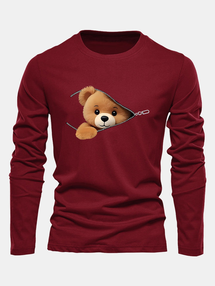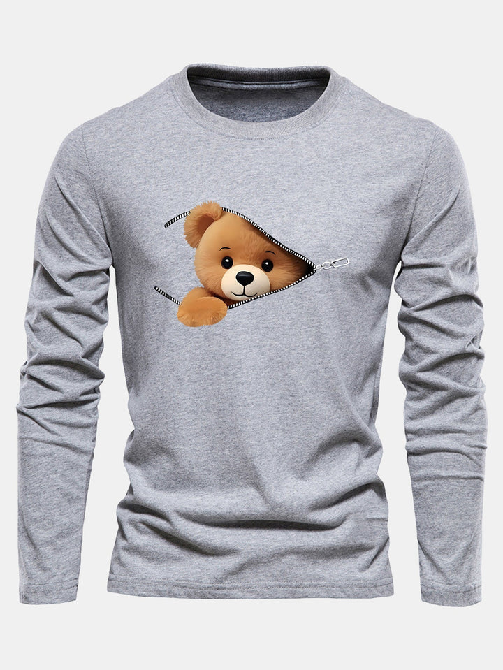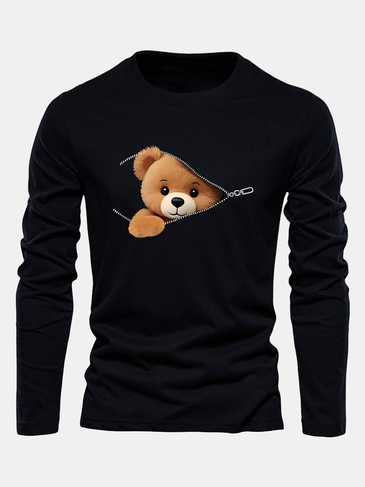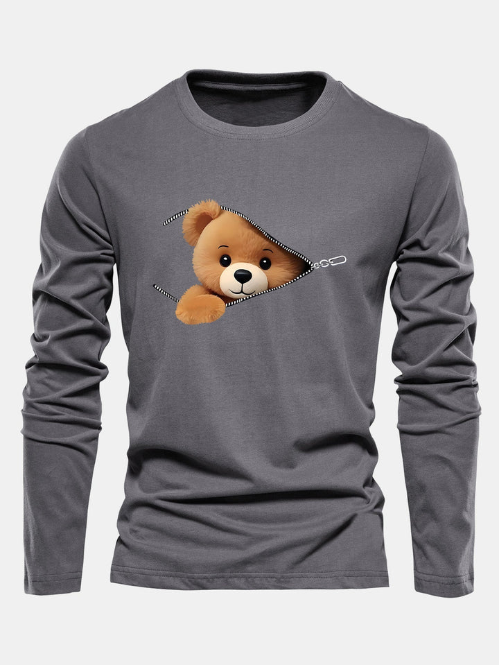Design Unique : Ce t-shirt à manches longues allie style mignon et décalé avec son imprimé audacieux d'un ours en peluche. Les détails de fermeture éclair ajoutent une touche de rébellion streetwear.