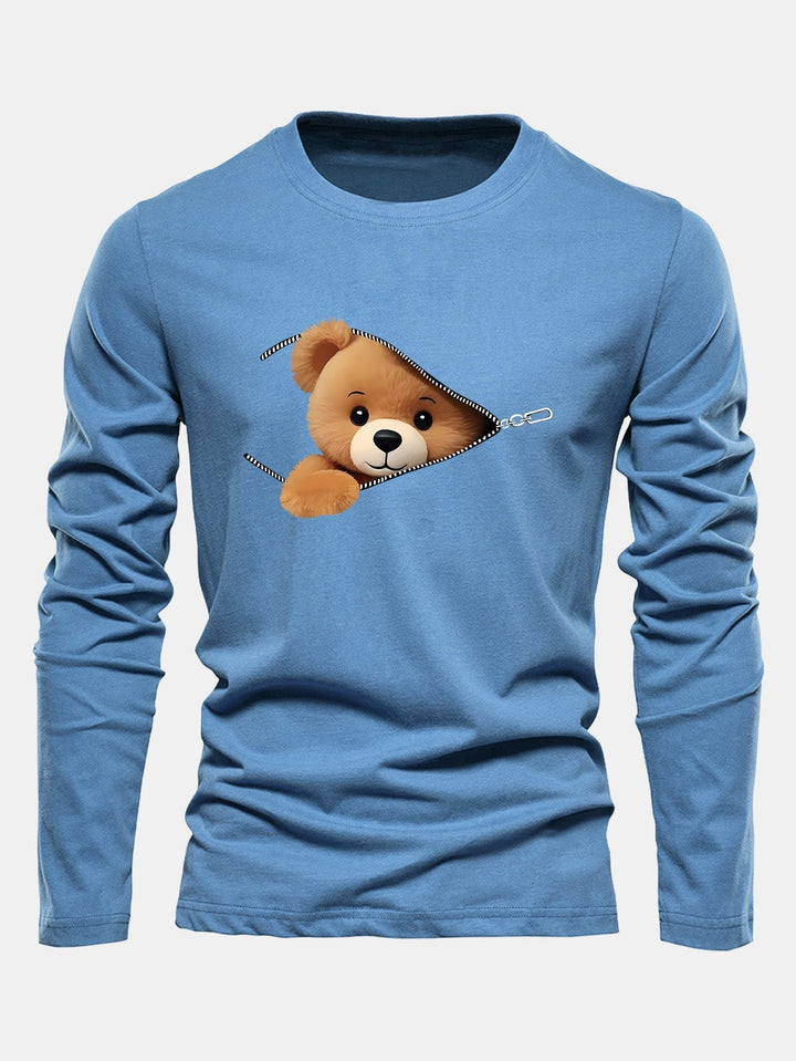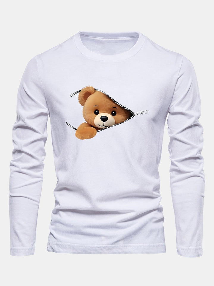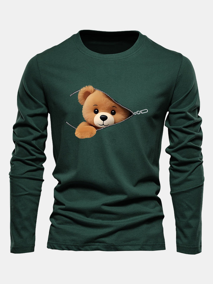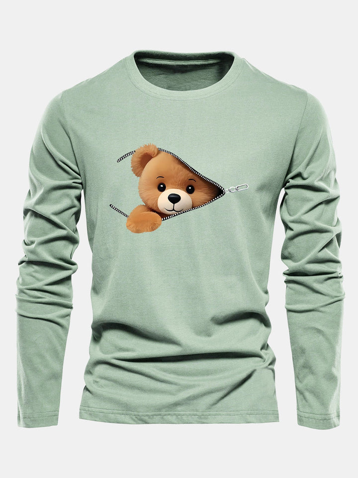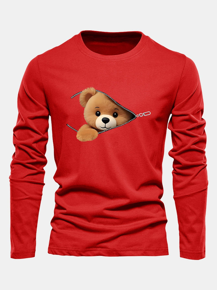 Design Unique : Ce t-shirt à manches longues allie style mignon et décalé avec son imprimé audacieux d'un ours en peluche. Les détails de fermeture éclair ajoutent une touche de rébellion streetwear.