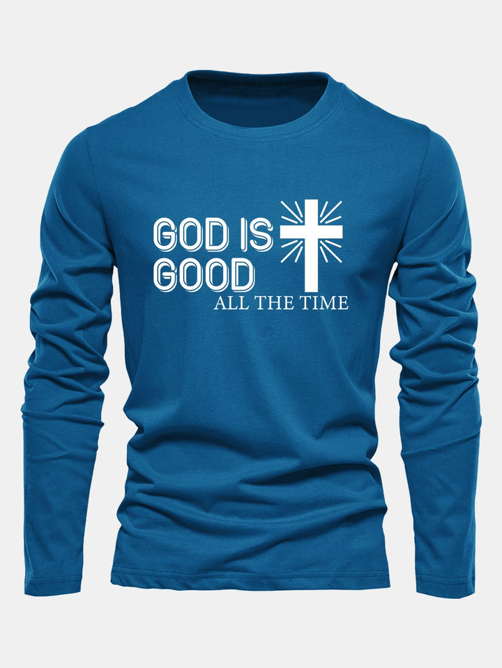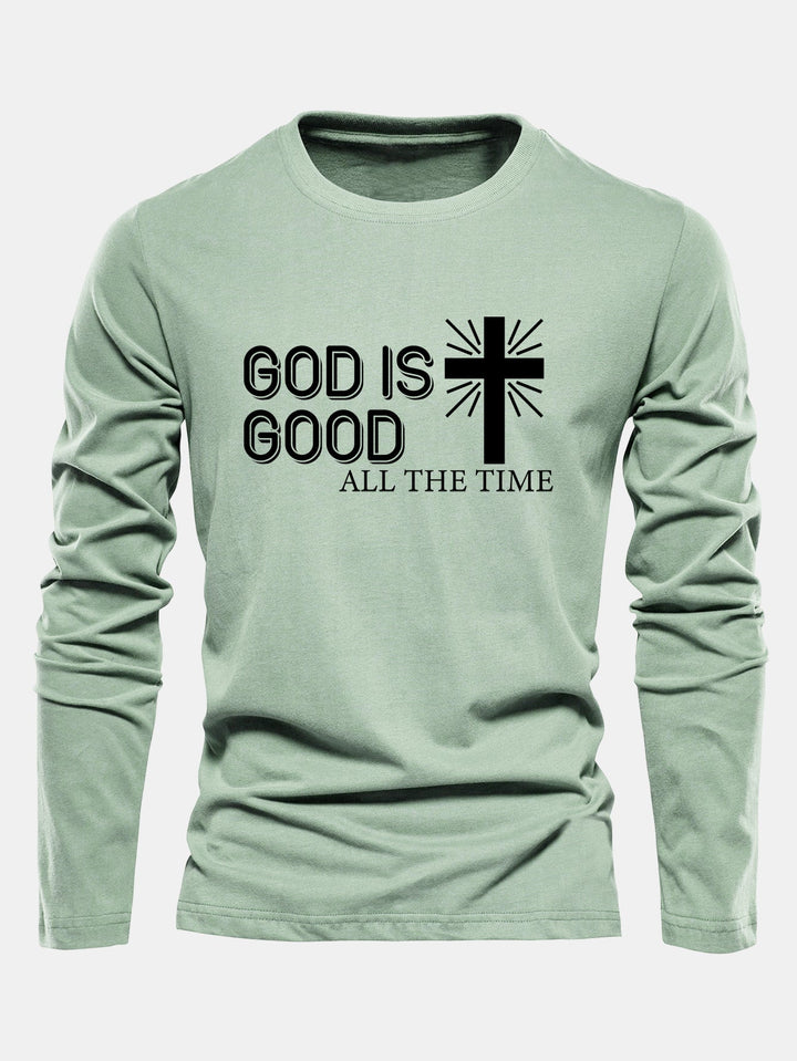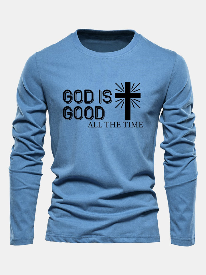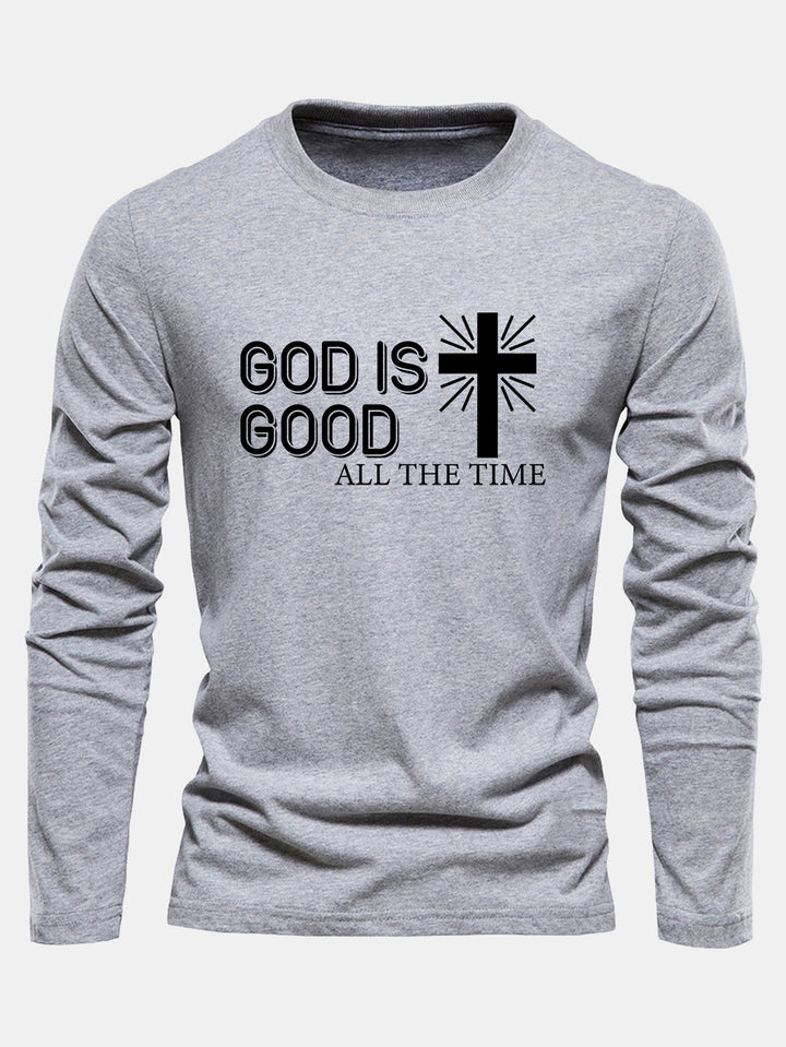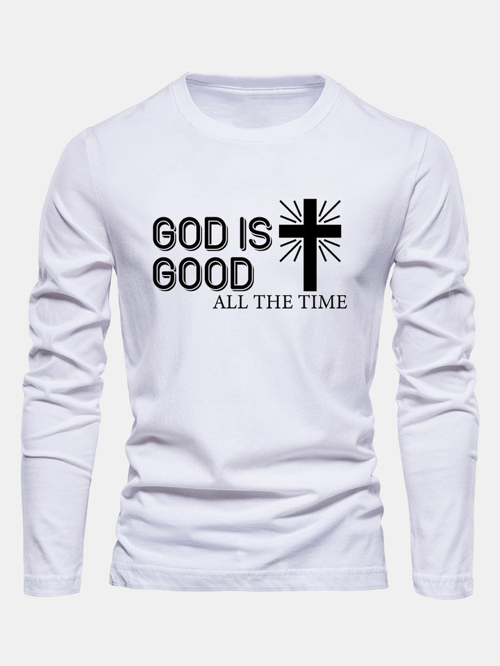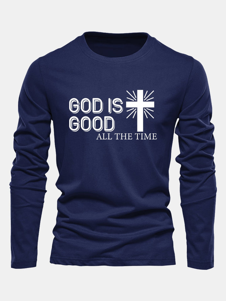 T-shirt à manches longues en coton 'Dieu est bon' avec motif croix
