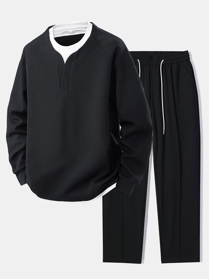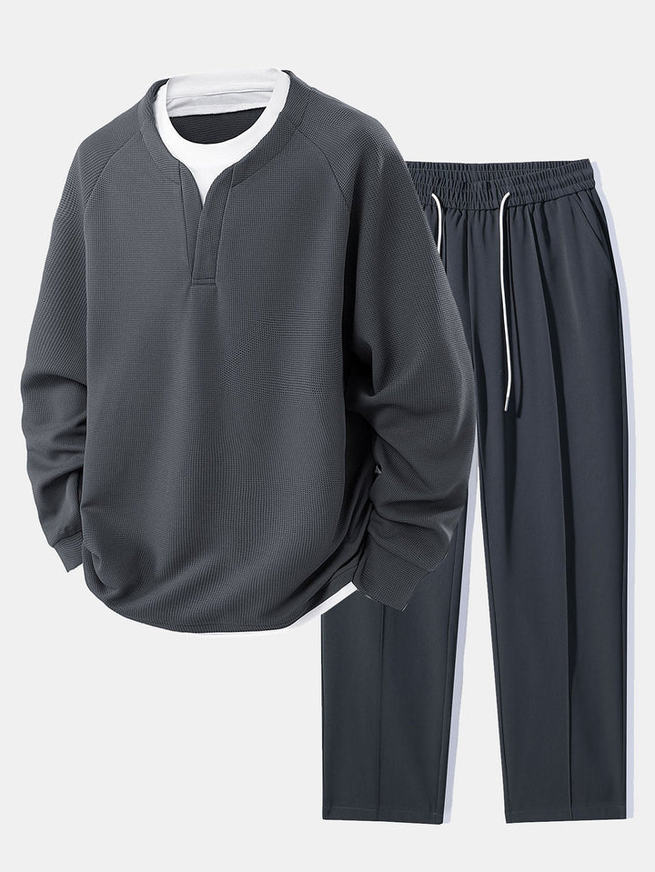 T-shirt Waffle à Manches Raglan 2 en 1 et Pantalon Droit Élastique avec Pli Simple