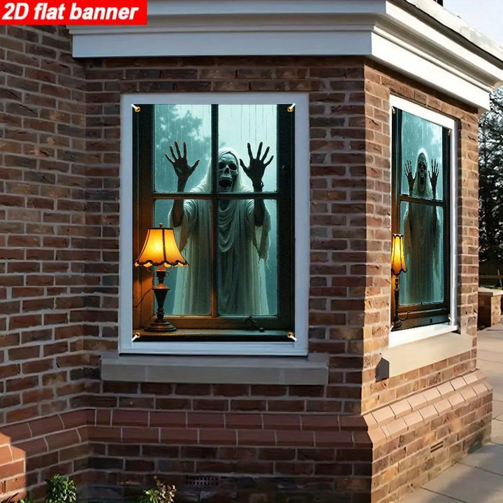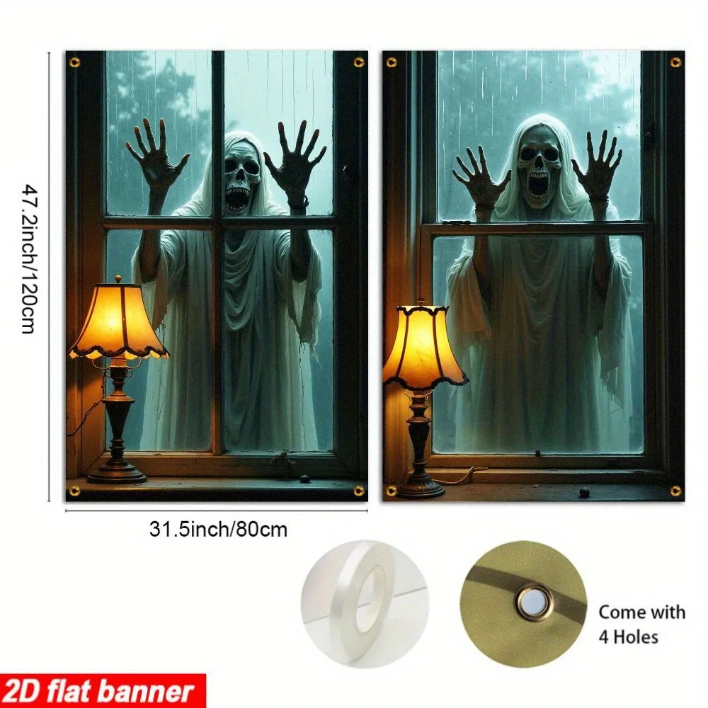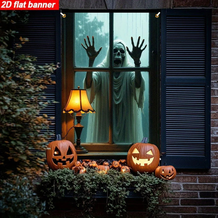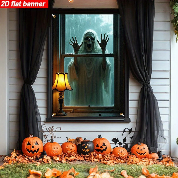 2X BANNIÈRE PLATE 2D CRÂNE HORREUR HALLOWEEN (POLYESTER)