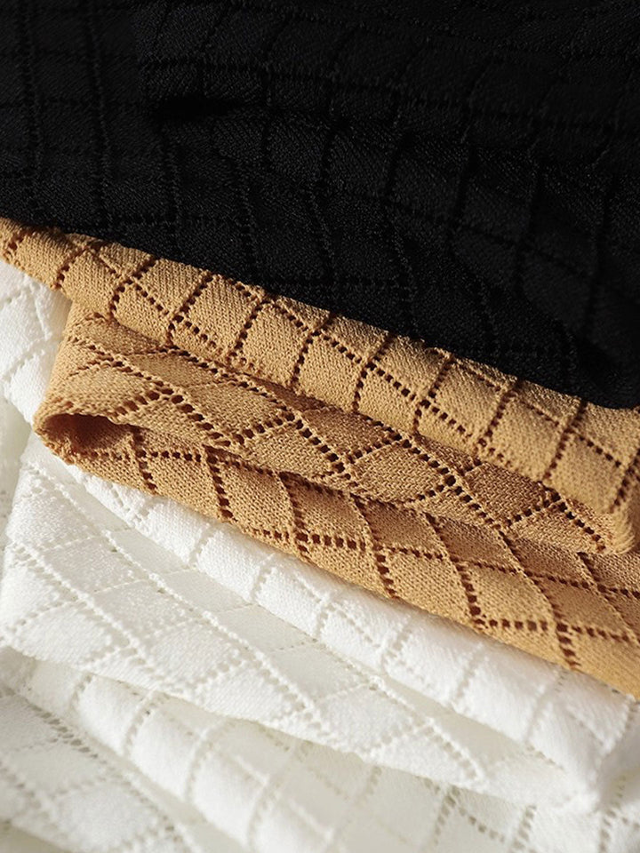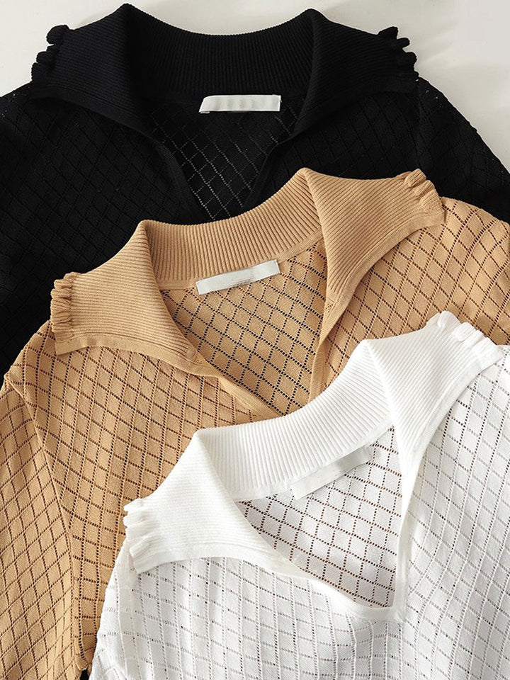 Ashley Classic V-Neck Hollow Solid Color Knitted Top-Noir