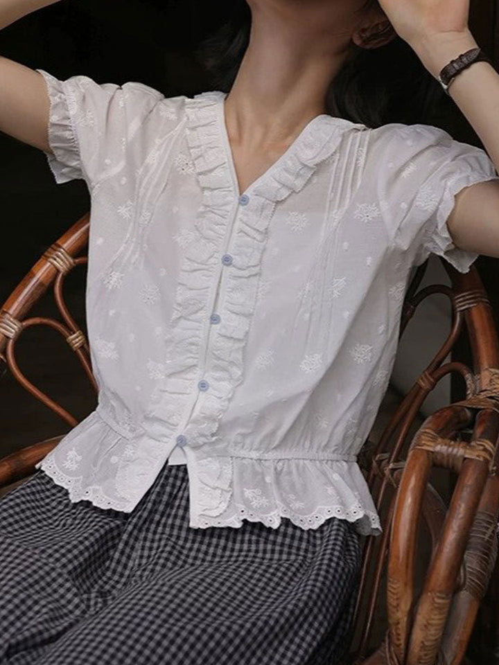 Blouse Brodée V-Neck Rétro Molly