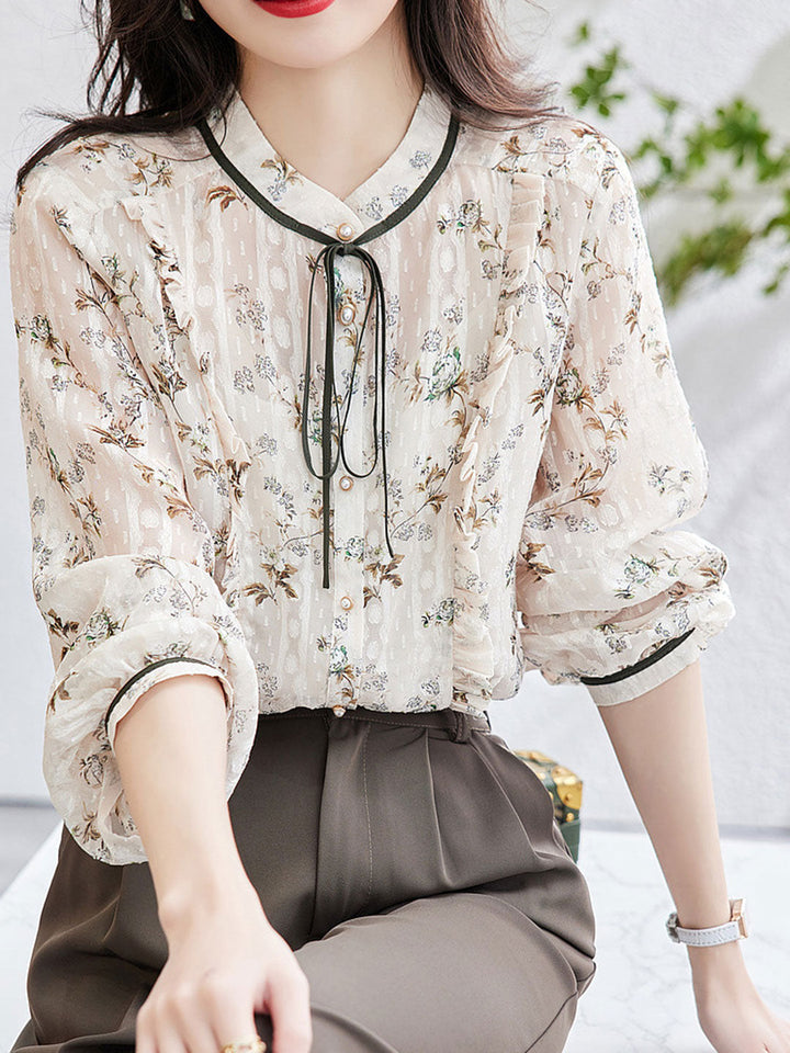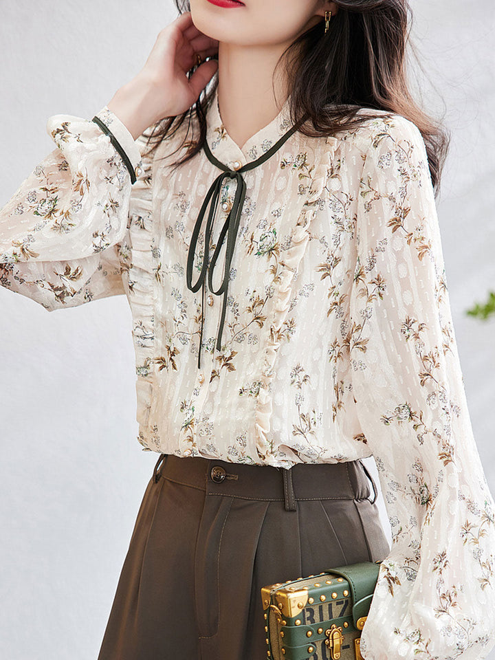 Blouse Chiffon Floral avec Nœud Vintage Chloe
