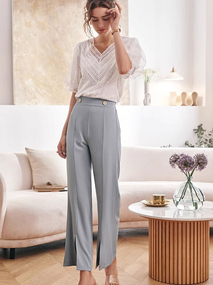 Blouse en Chiffon à Manches Bouffantes en Dentelle Rétro Brianna