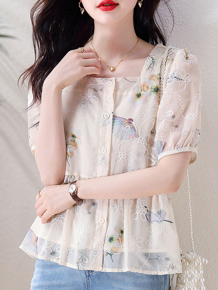 Blouse en Chiffon Imprimé à Manches Bouffantes Libres Kaitlyn