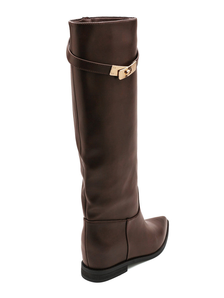Ces bottes épousent parfaitement la jambe et sont dotées d'un subtil détail métallique en haut, offrant une touche de luxe. Une fermeture éclair latérale facilite l'enfilage et le retrait.