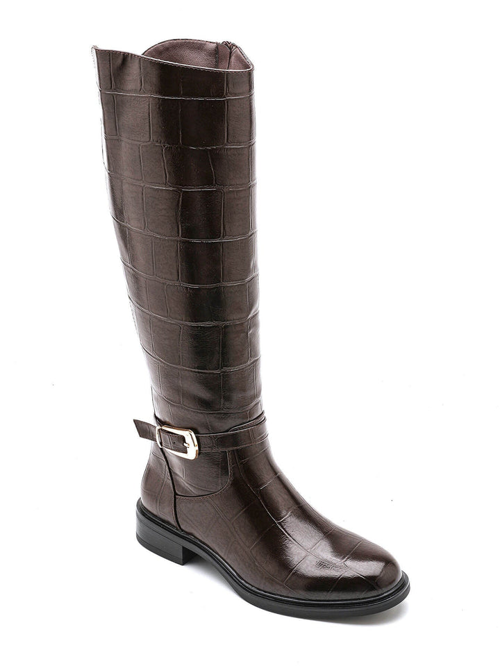 Les Bottes Haute Élastique Cro sont un ajout élégant et intemporel à votre garde-robe. Fabriquées dans un style croco avec un éclat subtil, et finies avec une boucle dorée pour une allure raffinée. L'arrière est doté d'une bande élastique, ce qui rend ces bottes parfaites pour les femmes aux mollets plus larges. Confort et style se rejoignent ici à merveille.