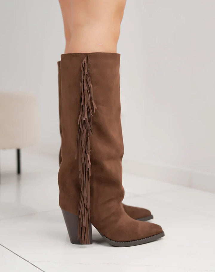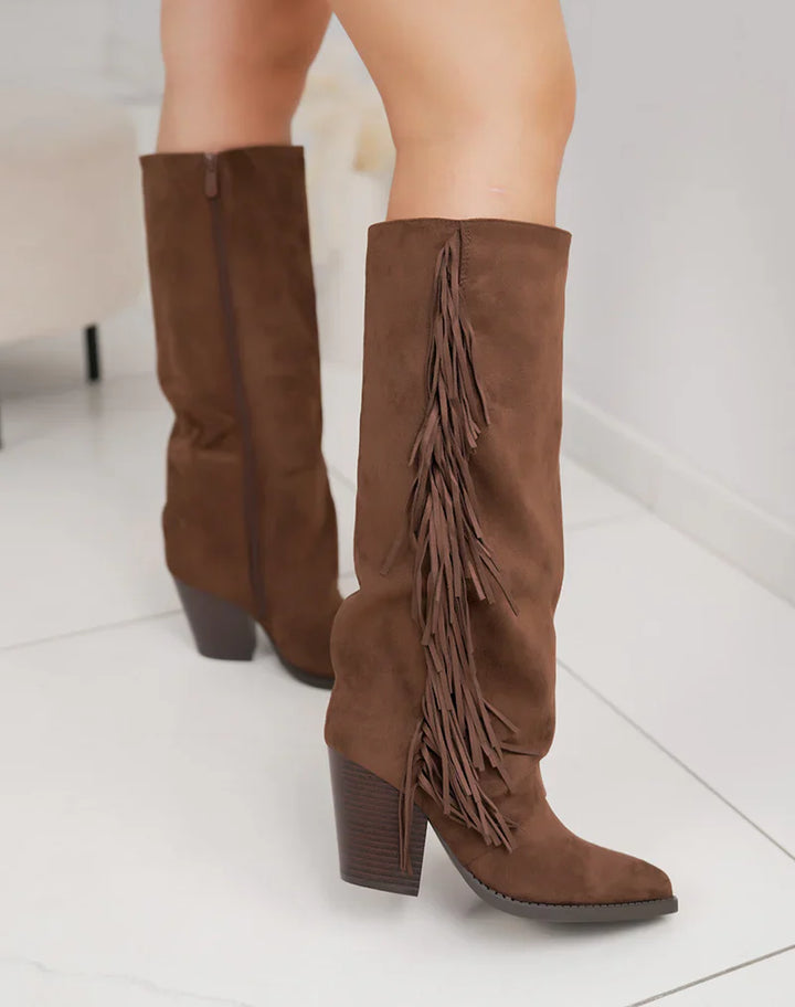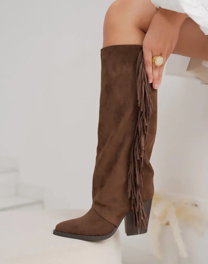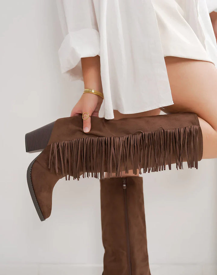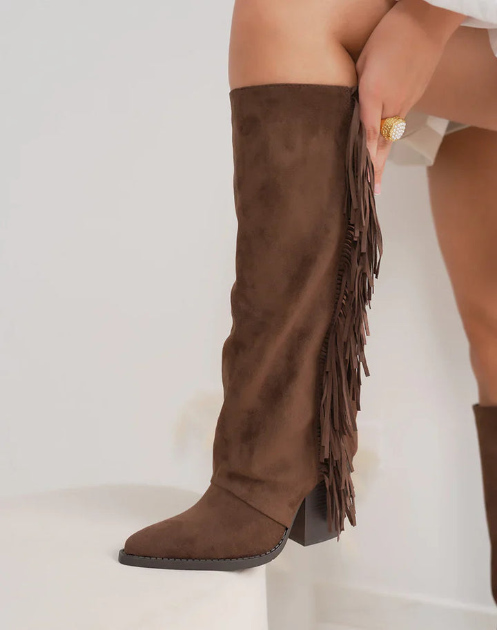 Bottes en Suédine Fringle avec Talon Bloc
