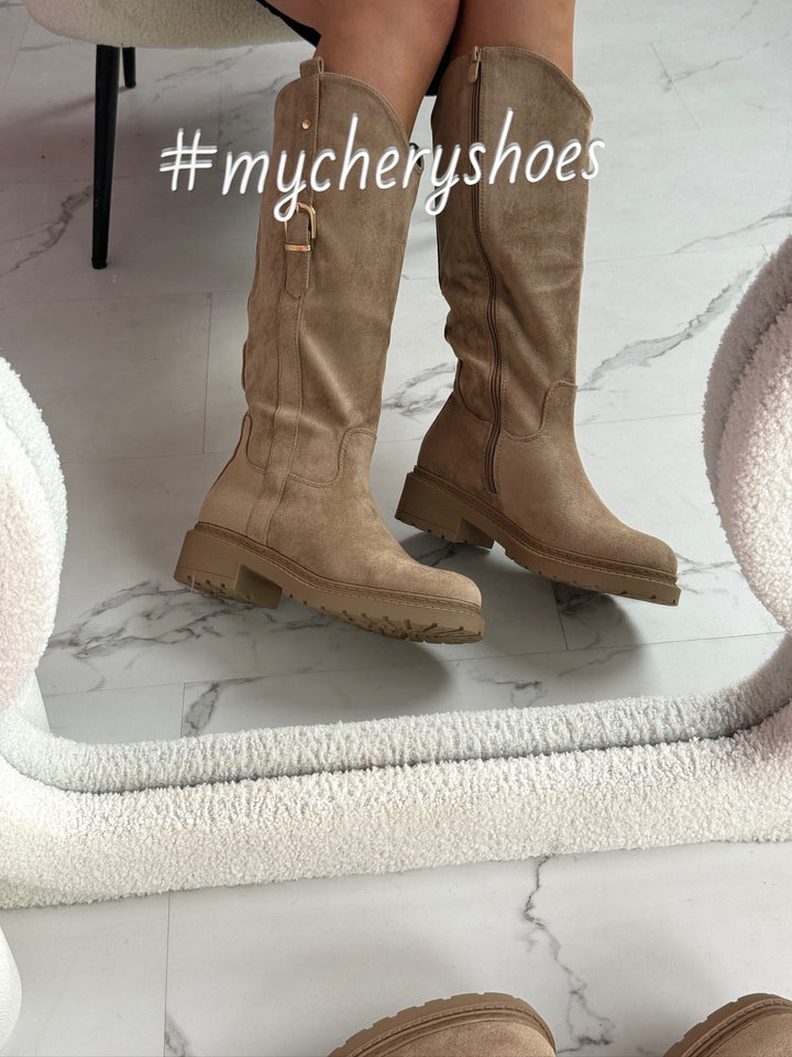 Affichez un style élégant cette saison avec les Bottes Hautes Lara. Ces bottes montantes allient confort et élégance avec une touche audacieuse grâce aux détails de boucle dorée. La version noire est en PU cuir robuste, tandis que la version kaki a une finition douce en suedine. Les deux variantes sont dotées d'une fermeture éclair à l'intérieur, ce qui les rend faciles à enfiler et à enlever.