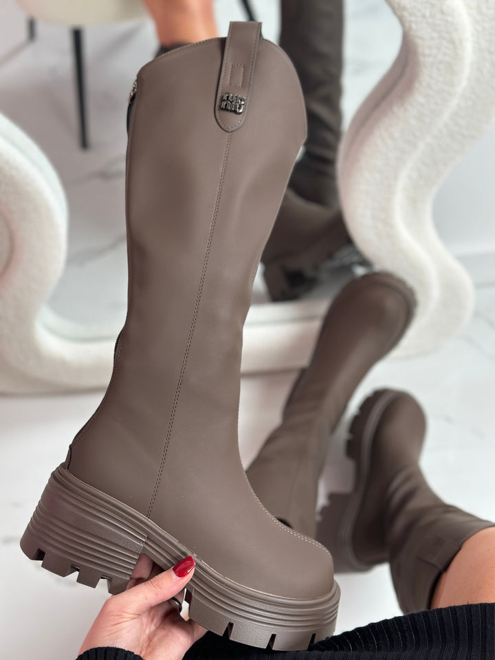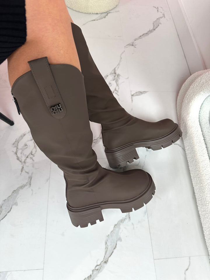 Superbes bottes hautes en simili cuir ! Parfaites à associer avec une jupe ou une robe !
