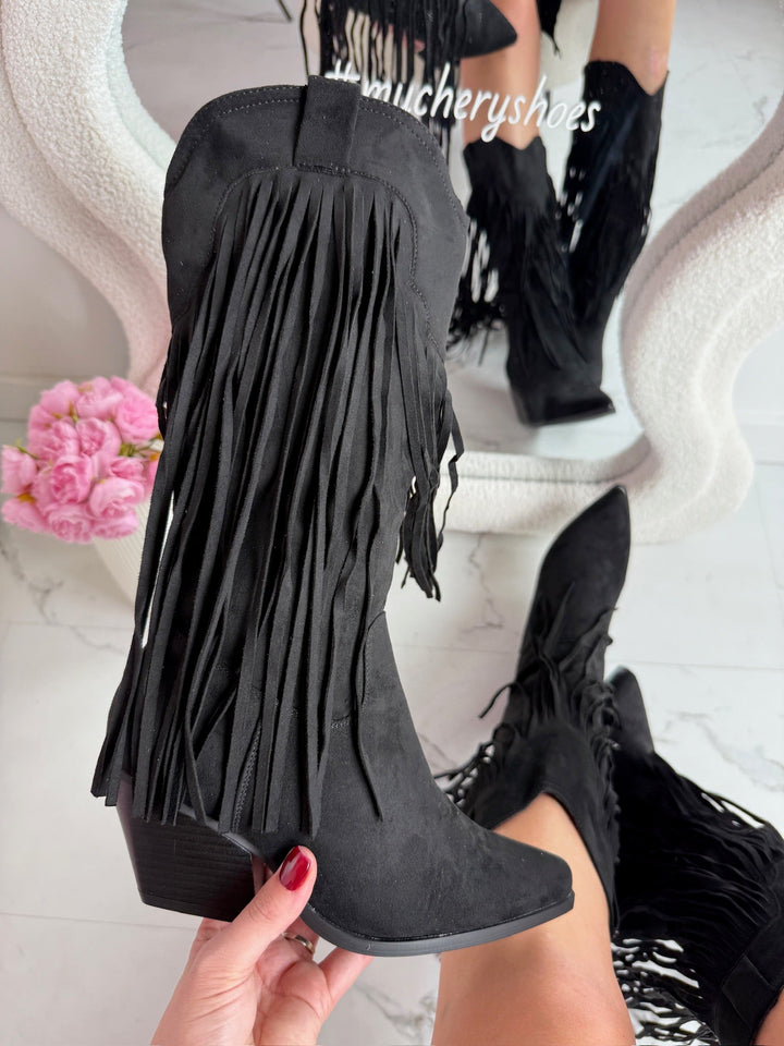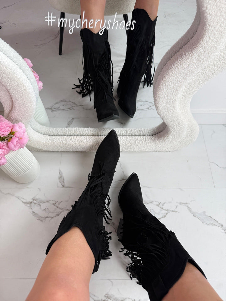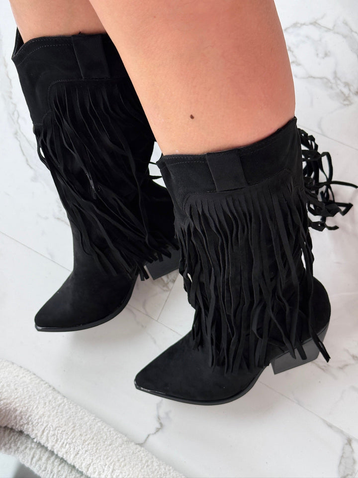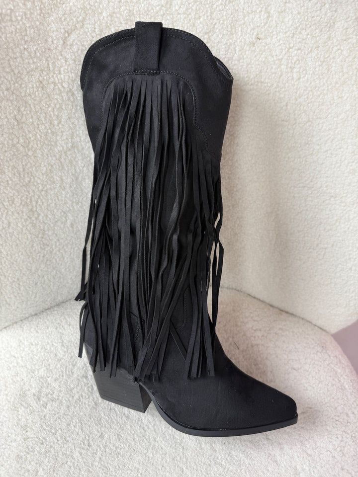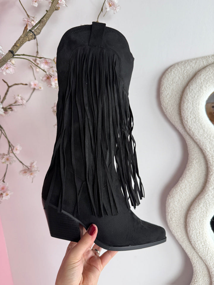 Bottes Noires Hautes avec Franges