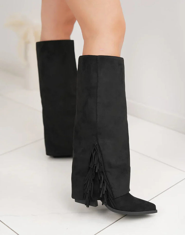 Les Bottes Misha sont le mélange parfait de style et de confort. Fabriquées en suédine souple avec un détail de franges élégant sur le côté. Le talon bloc de 6 cm offre une longueur supplémentaire sans compromettre le confort de port.