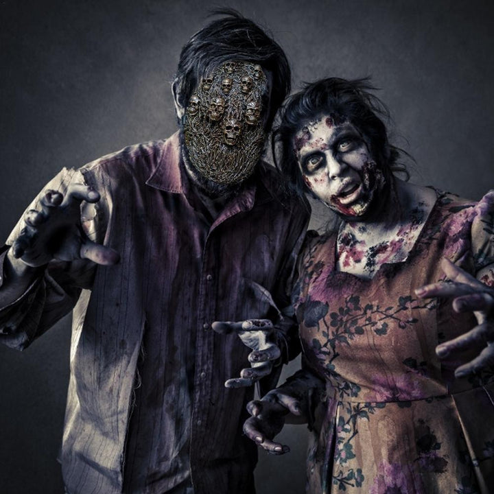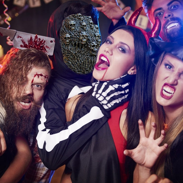 Conviértete en el esqueleto más aterrador de la fiesta con esta máscara de calavera de cara completa. Su diseño gótico y espeluznante aporta un realismo impresionante, ideal para Halloween, cosplay o sesiones de fotos temáticas. Fabricada en látex elástico de alta calidad, se adapta cómodamente a la piel y permite una respiración adecuada. Disponible también en versión de material plástico rígido para un efecto aún más impactante.