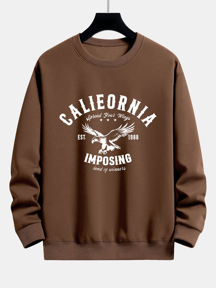 Featuring a bold eagle and ''California'' graphic, this sweatshirt blends casual comfort with a touch of Americana style. The relaxed silhouette makes it an easy go-to for layering or wearing solo, perfect for everyday wear or laid-back weekends.