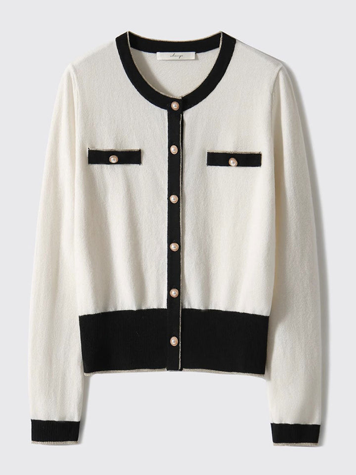Cardigan Tricoté Classique Sophia à Col Rond Contrasté