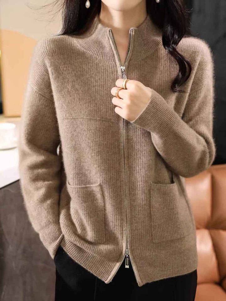 Cardigan Tricoté Zippé à Col Roulé Loose Hannah