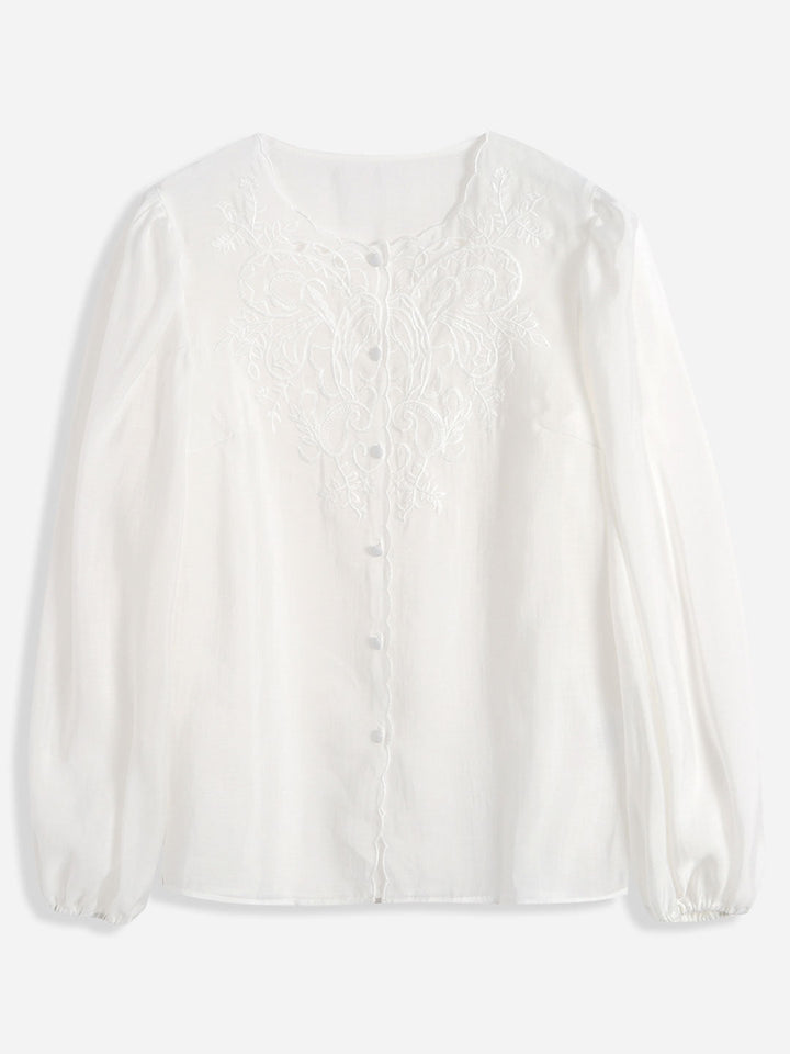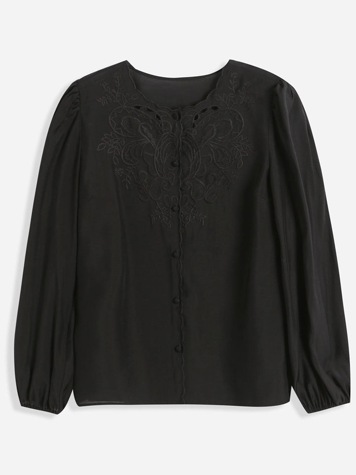 Chemise à manches lanternes brodée élégante Jocelyn - Kaki