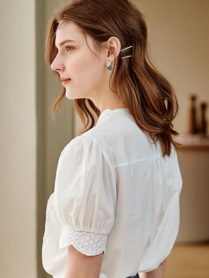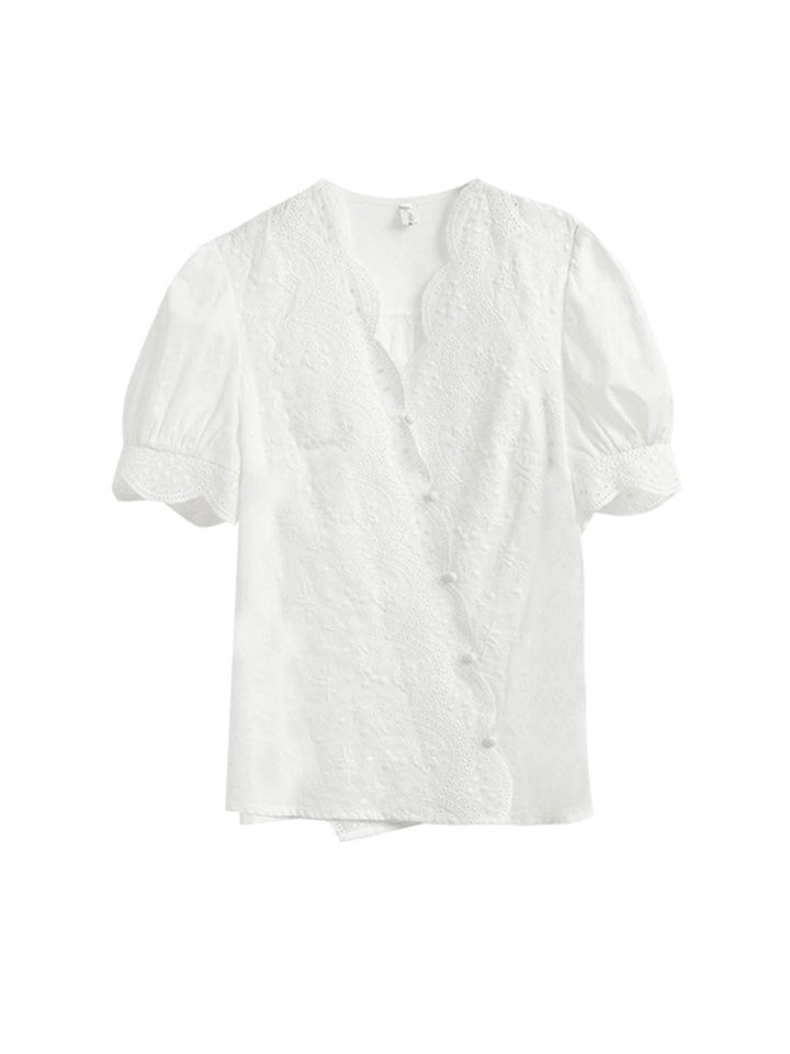 Chemise en Chiffon Brodée à Col V Rétro Eva
