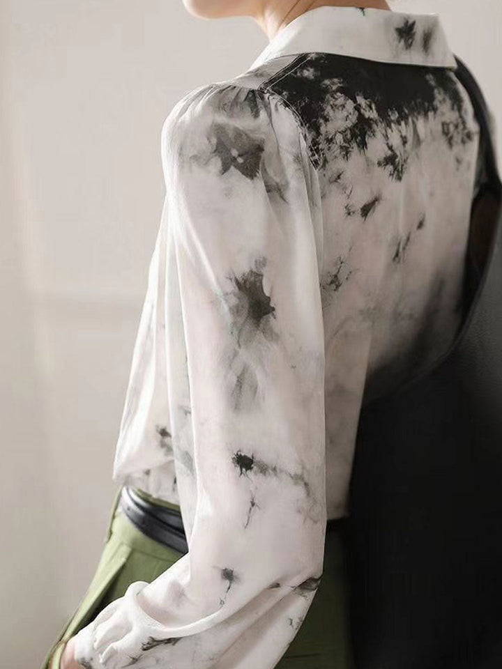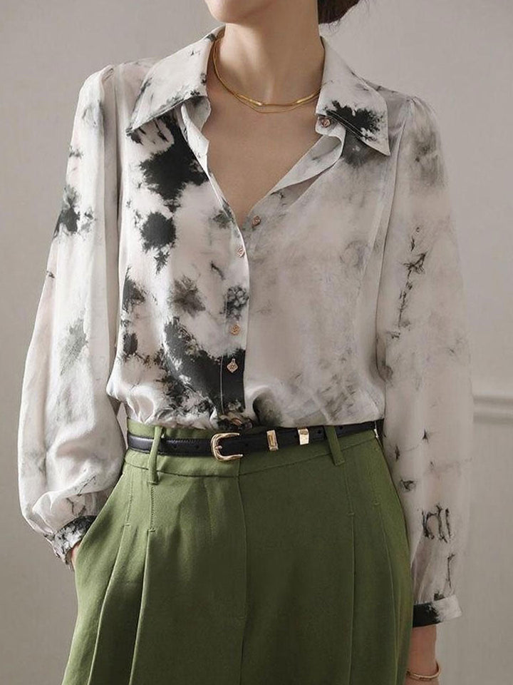 Chemise imprimée à col polo rétro Jessica à manches bouffantes