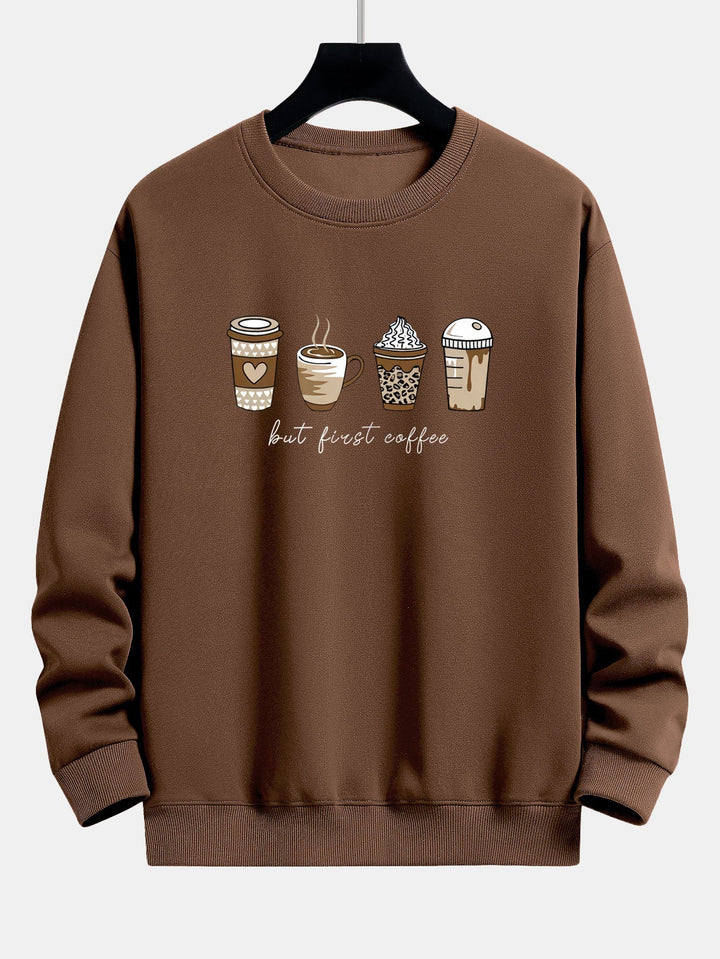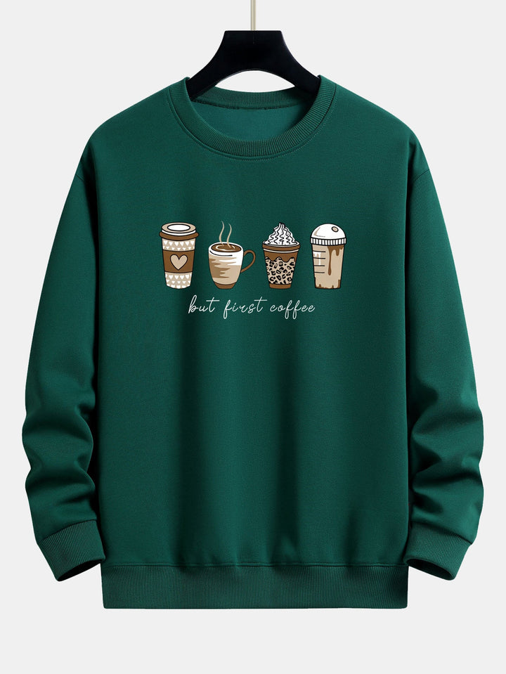 Featuring a playful coffee-themed graphic on soft, comfortable fabric, this sweatshirt combines casual comfort with a fun, lifestyle-inspired design. The relaxed fit makes it perfect for layering or wearing on its own, ideal for lounging, casual outings, or coffee shop vibes.